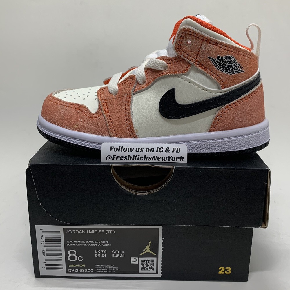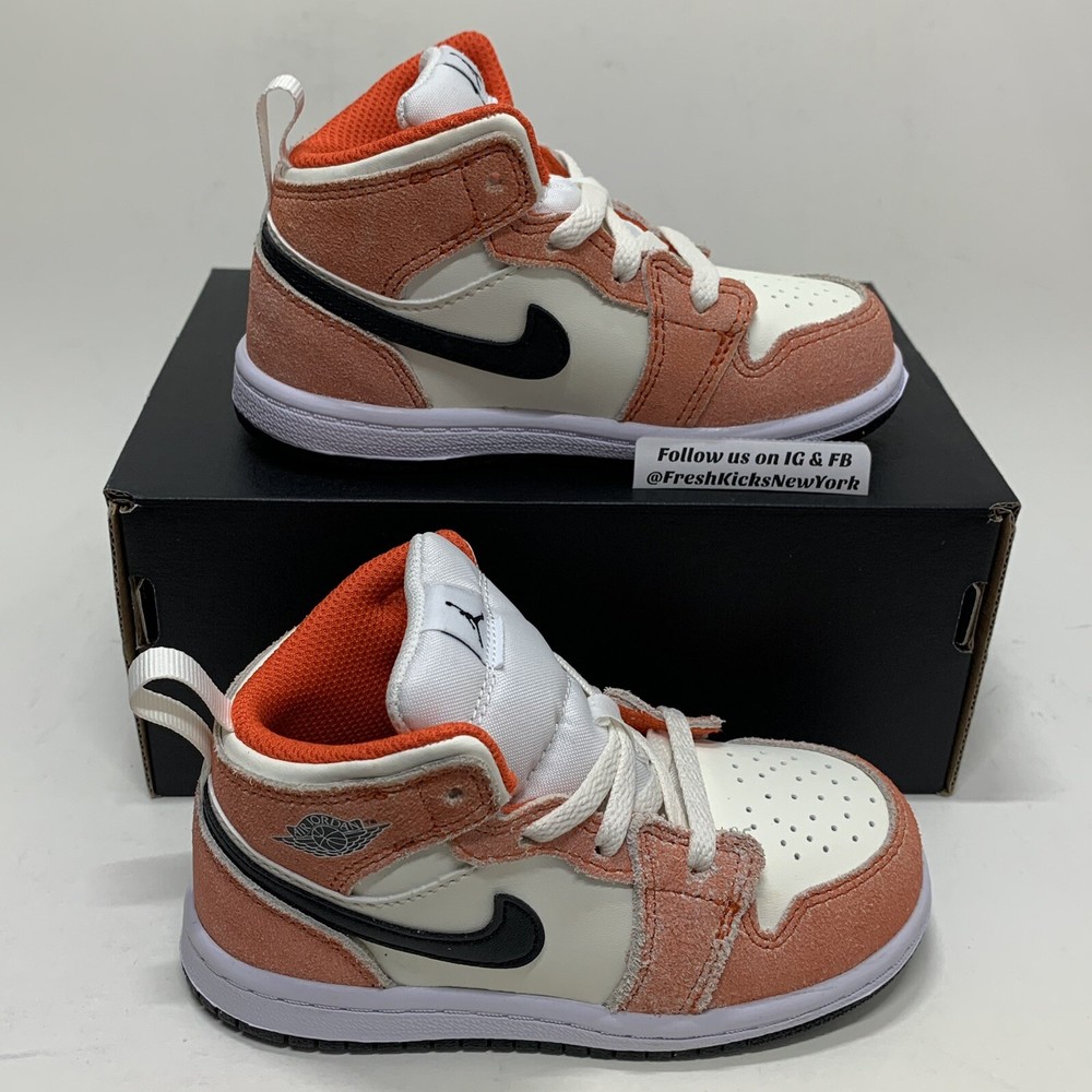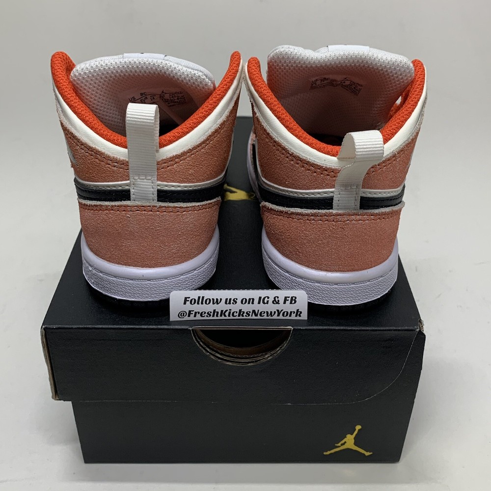 Jordan 1 Mid Orange Suede Toddler Size 8c New DV1340-800 Air Jordan Mid Baby TD *Size: 8c Toddler / Baby Niños Pequeños *Condition: New with box and authentic/original *Condición: Nueva con caja y auténtica/original. *Local pick up is available only if you are located in New York City otherwise please choose shipping. *Recogida local está disponible solo si se encuentra en la ciudad de Nueva York; de lo contrario, elija el envío. *This item ships in a padded envelope, mistreatment of packages made by carriers are not on me. If you need me to ship in a carton box please contact me before purchasing (shipping cost will increase a few dollars) *Este artículo se envía en un sobre acolchado, paquetes mal tratados por los transportistas no corren por mi cuenta. Si necesita que envíe en una caja de cartón, comuníquese conmigo antes de comprar (el costo de envío aumentará unos pocos dólares) *All orders will ship on the following business day. *Todos los pedidos se enviarán el siguiente día laboral. Please note: Not all pairs from Nike are perfect especially on Jordan 3s and 4s. Some pairs might have flaws, defects or imperfections. Please make sure you review all photos! Listings that have more than 1 quantity you might not get the same exact shoe from the photos but will be very similar. Tenga en cuenta: No todos los pares de Nike son perfectos, especialmente en Jordan 3 y 4. Algunos pares pueden tener fallas, defectos o imperfecciones. Asegúrate de revisar todas las fotos! Los listados que tienen más de 1 cantidad, es posible que no obtenga exactamente el mismo zapato de las fotos, pero será muy similar. *If listing does not have a “make offer” button then i am not accepting any offers. *Si la lista no tiene un botón "hacer oferta", entonces no acepto ninguna oferta. Instagram:FreshKicksNewYork