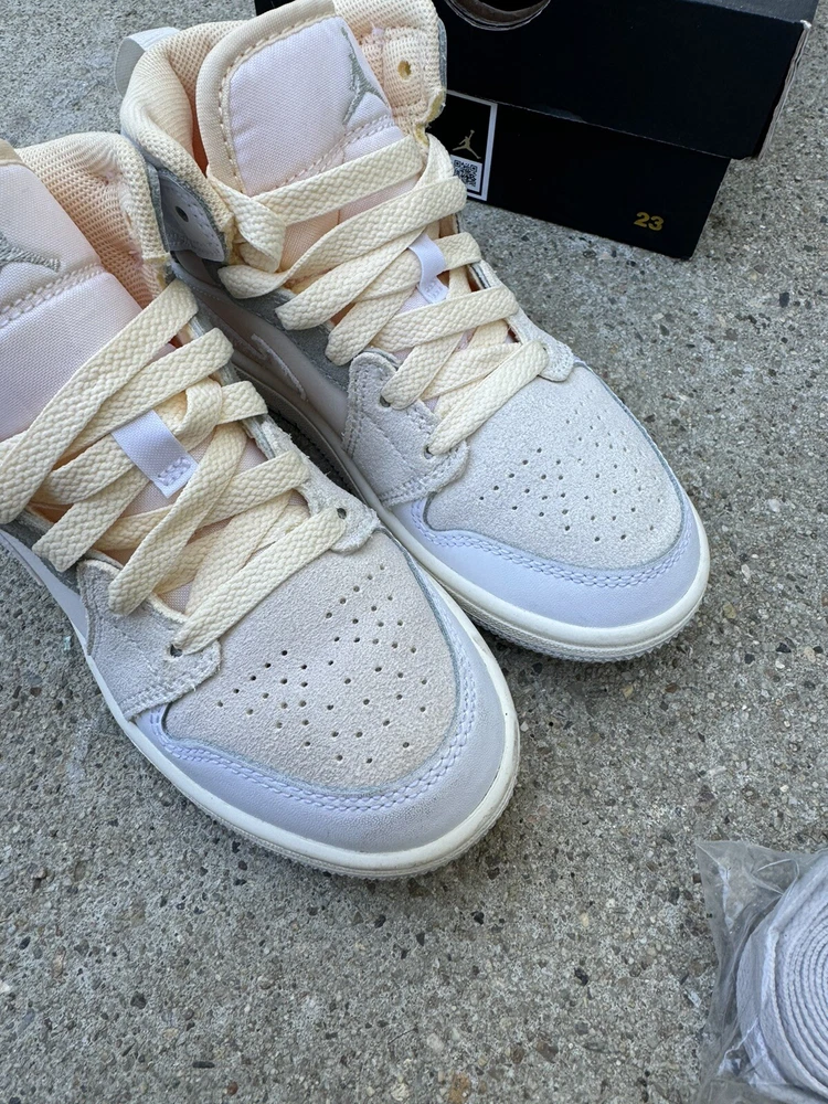 Jordan 1 Mid SE Craft Inside Out White Grey (PS) Kids Size 12 White / Gray / Peach NEW in box