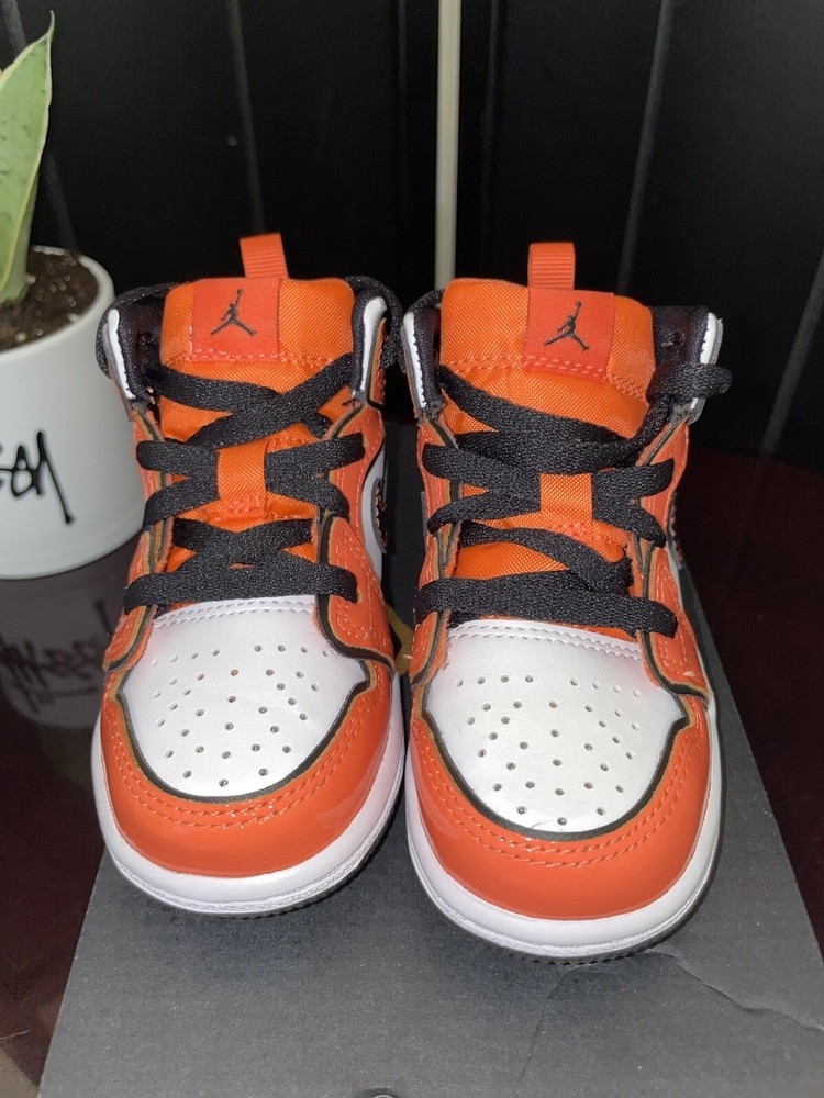 nike air. Jordon 1 mid TD Turf orange/ black white