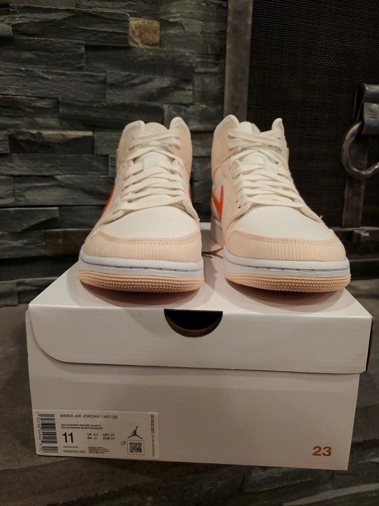 Jordan 1 Mid Sail Orange Quartz Size 11w 9.5m DEADSTOCKr. DOPE shoe in a tough to find size! Guaranteed 100% authentic or 2x your money back. Condition is "New with box". Shipped double boxed with USPS Priority Mail as soon as payment arrives. Feel free to reach out with any questions or to make an offer. All sales final. Thanks!