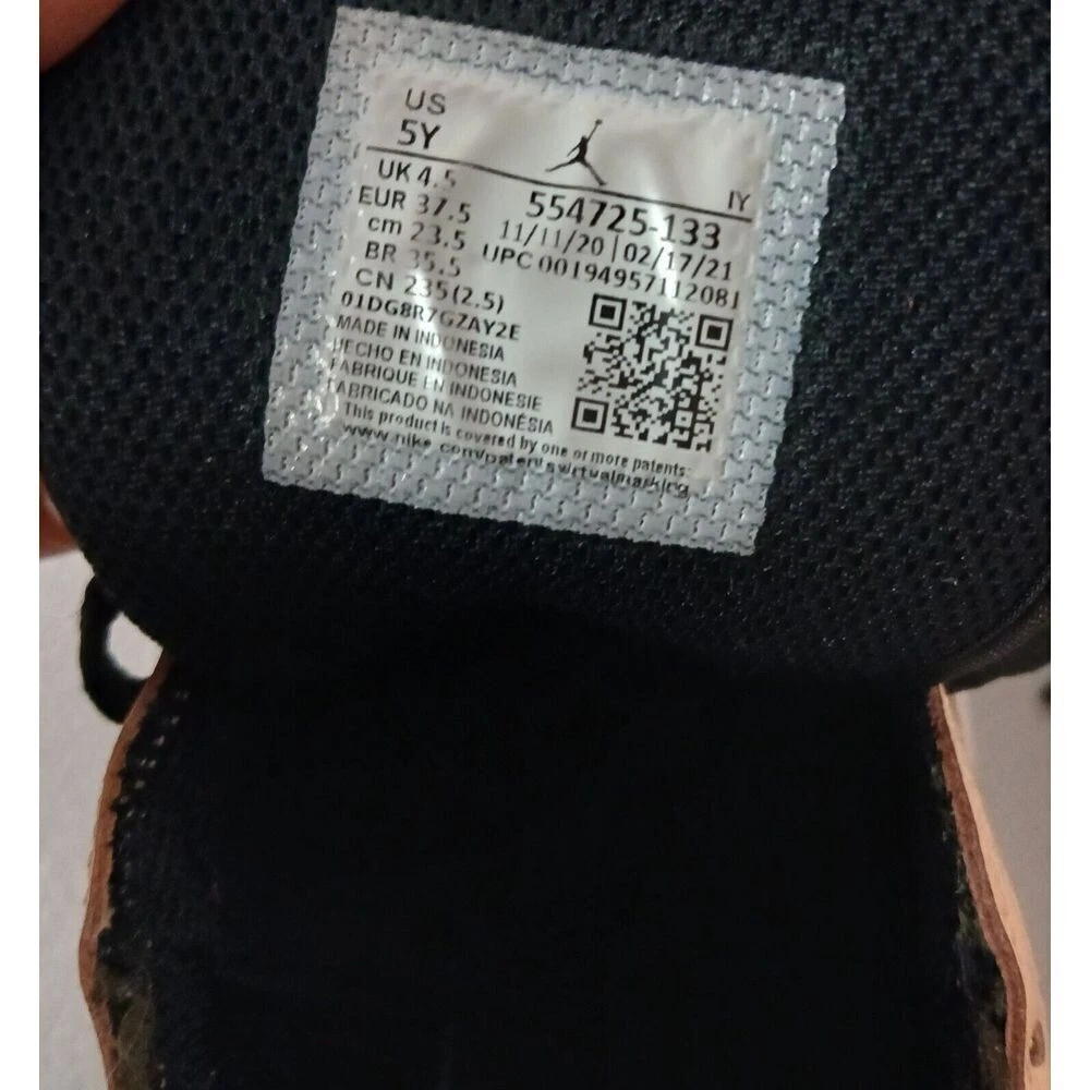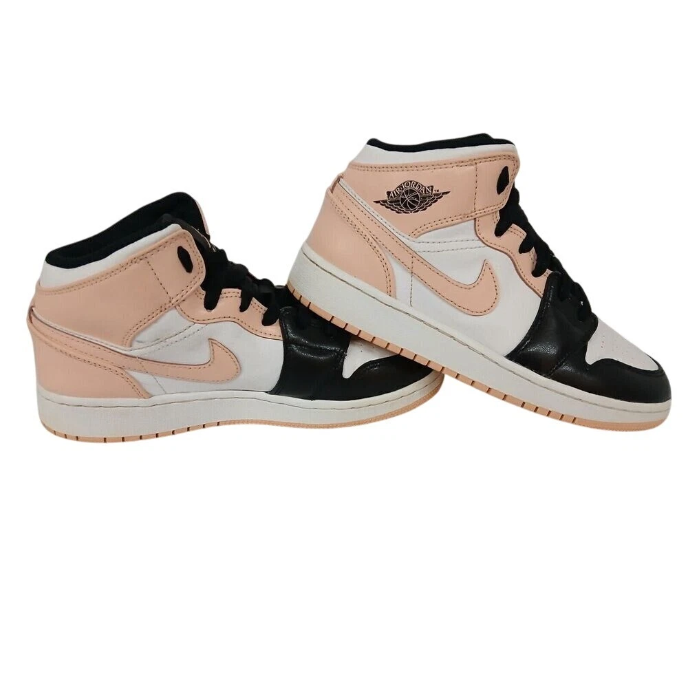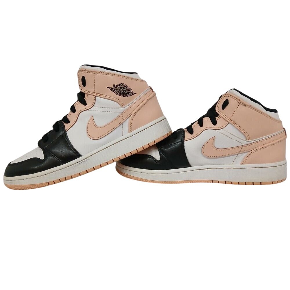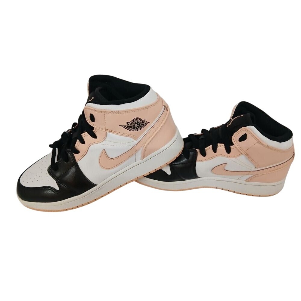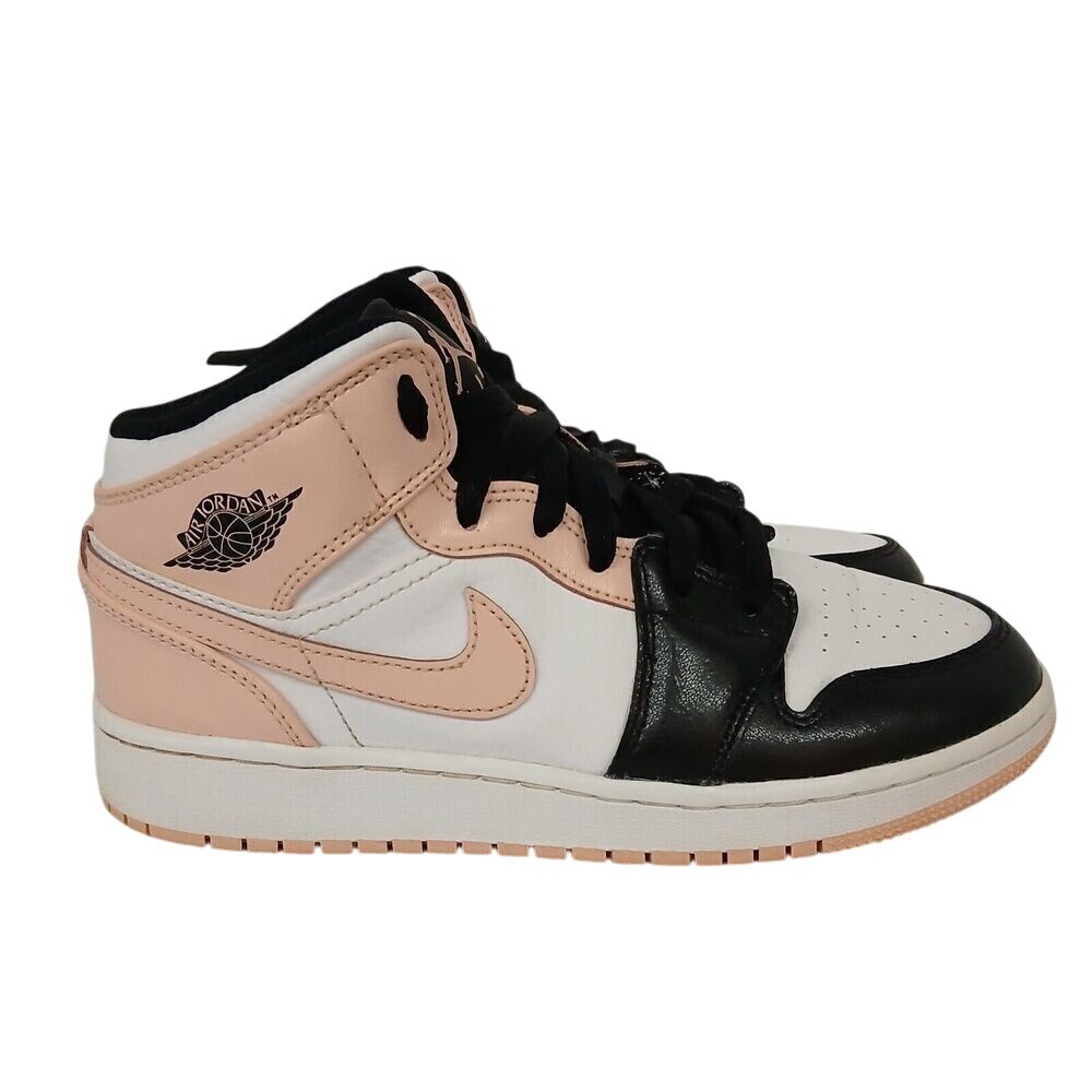 Jordan Air 1 Mid GS in a stylish multicolor design. These lace-up sneakers feature a mid-top silhouette and standard shoe width, with a UK size of 4.5 and US size of 5Y. The shoe shaft style is perfect for those who prefer a more traditional look, while the crimson tint adds a pop of color to any outfit. Made for Men or Women, these athletic sneakers are perfect for any season, whether it be winter, summer, fall, or spring. The Air Jordan product line is known for its high-quality and iconic designs, and the Jordan Air 1 Mid GS is no exception. Don't miss out on the chance to add these sneakers to your collection.
