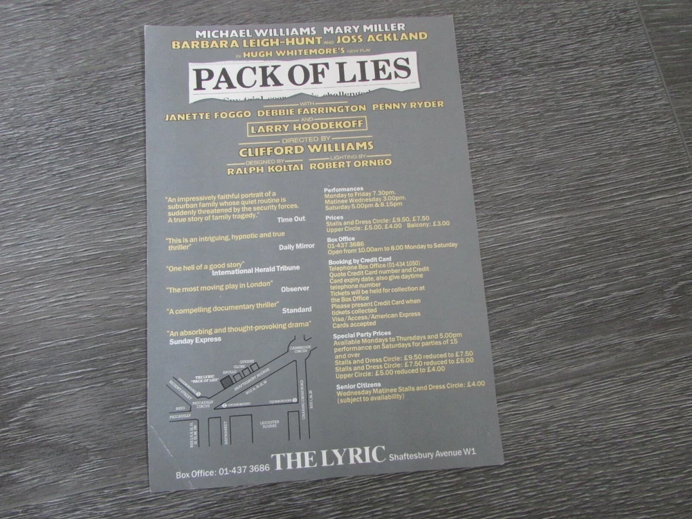 Attic Clearance Shop about new in feedback contact us Joss Ackland in Pack of Lies Original the Lyric Theatre London Flyer Trusted Seller This auction is for the original theatre or cinema flyer / promotional handbill in the pictures and these do look nice once framed or inserted into a montage. View Store Contact seller UK BASED SELLER Satisfaction guaranteed Fast and Safe Delivery Experienced & helpful staff Categories Books, Comics and Magazines Cinema, Theatre & Television SCARVES, ties & Clothing Sports Range Toys & Games Collectables Shipping & Returns 1) I aim to post items promptly. In most cases I despatch items within 2 working days of purchase (Monday to Friday). I do occasionally state in the listings items will be posted within 5 working days to cover for when we are away for a few days or have family commitments that take priority. 2) The vast majority of my items are posted via the UK postal carrier Royal Mail. I do find the eBay expected delivery times are fairly accurate however occasionally delays can occur due to issues outside my control. Full details can normally be obtained from the Royal Mail Website. Occasionally eBay do add some details to their messaging system highlighting any delays however in most cases this is after the event. 3) Every item I now sell in the UK includes free shipping using the Royal Mail 48 service. This provides tracking at the point an item enters the postal system and again once it is delivered. 4) For buyers outside the UK please be aware following changes to global shipping services there may be additional taxes, tariffs or charges applied in your country at Customs or by your local postal carrier. I am not responsible for these and please ensure you consider these before placing your order. These differ between countries and do change on a periodic basis. For items posted using the eBay Global Shipping system I have no control over the postal charges they make and are in their hands regarding these as they apply and collect these. 5) In the unlikely event an item does go missing in the postal system I always raise a claim with Royal Mail as this allows them to build up a picture of any problem areas. Fortunately these are the exception and in most cases items are received when expected however occasionally items can take longer than expected to arrive. Due to the volume of items I list, and have listed, I do occasionally make mistakes. Before raising a dispute or leaving neutral or negative feedback if you do have a problem please drop me a note and I always aim to resolve these quickly. I aim to provide the service I would expect myself when buying items from eBay and will always do everything I can to resolve a problem to everybody's satisfaction. I have become increasingly frustrated when negative or neutral feedback is left without contacting me first as this is unfair. If you read my feedback I would hope this shows I am 100% genuine and always strive to provide an excellent level of service and struggle to understand why is it my fault when an item is lost in the postal system, particularly when I can provide proof it was posted in a timely manner. If you do have any queries please can you send any e-mails via the eBay messaging system as I do not pick up all of those sent to my private email address. About Us Welcome to my eBay shop. I aim to sell items that are not easy to acquire and add new lines every week to keep my listings interesting and fresh. I hope you find something of interest when browsing and please add me to your favourites or call back soon as you never know what you may find. Buy in confidence from a long established reputable seller who has sold items on eBay since 2002 Built By SHOP ABOUT NEW IN CONTACT US FEEDBACK Contact info Copyright We Can source It All Rights Reserved Built by Jarilo Design