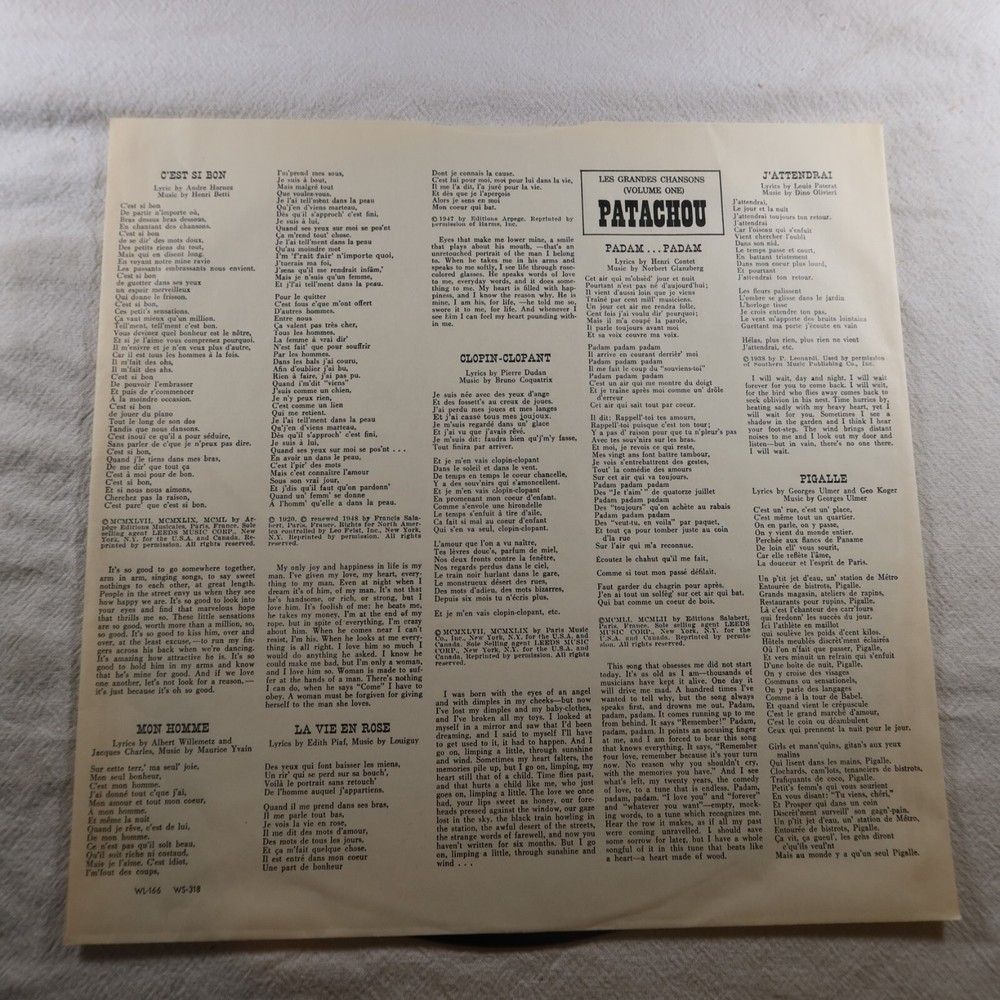 | Release Title | Les Grandes Chansons Volume 1 Patachou |