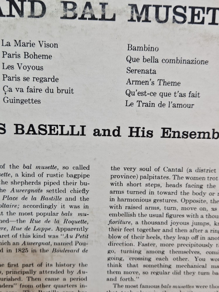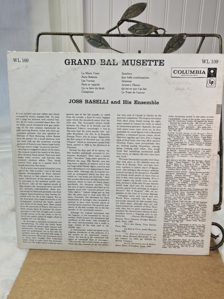 Experience the enchanting sound of Joss Baselli & His Ensemble with this Columbia WL-109 Mono LP. The record features 12-inch vinyl with a speed of 33 RPM, perfect for any world music enthusiast. The sleeve grading is Very Good (VG) and the record grading is also Very Good (VG), ensuring great sound quality. This LP is a must-have for anyone looking to add to their vinyl collection. The record label is Columbia, and the style is France & Belgium. The genre is World Music, and the record size is 12". This item is perfect for e-commerce platforms such as Amazon and EBay.