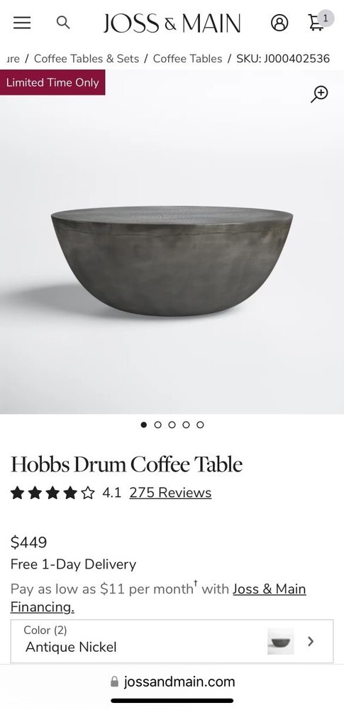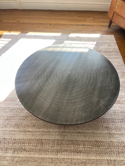 This coffee table is a stunning blend of vintage charm and modern durability. The antique nickel finish gives it a timeless look, while the sturdy iron construction ensures it holds up beautifully. Perfect for holding books, decor, or drinks, it fits seamlessly into any room. The compact size makes it versatile without sacrificing style—definitely a great addition to any home!