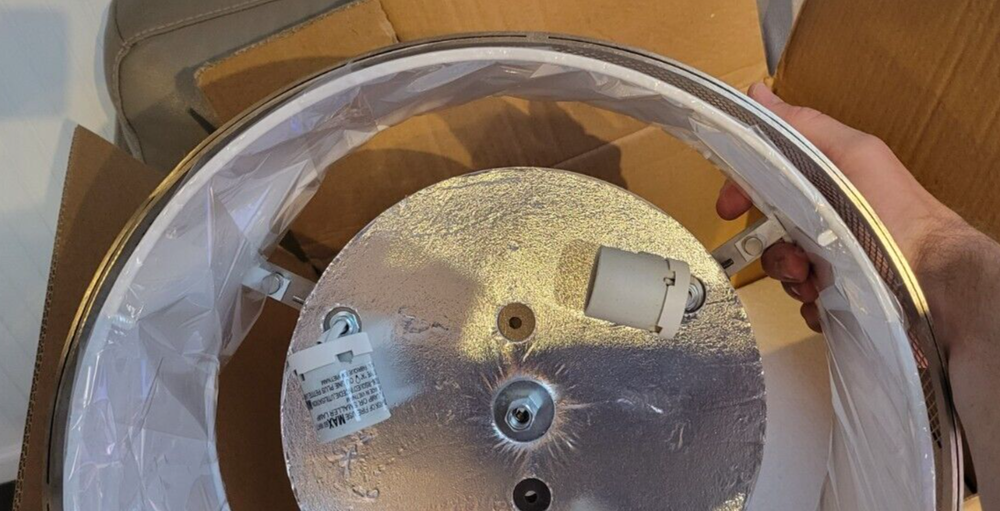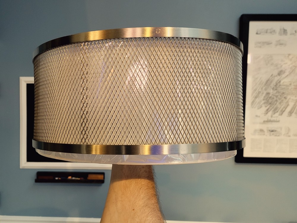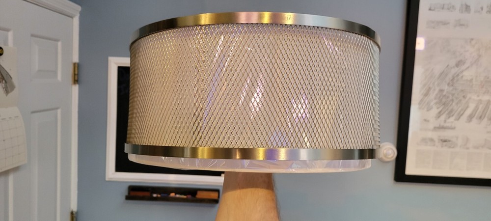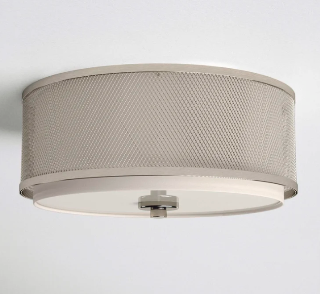 This brushed nickel flush mount light is a steal at less than half the retail price! The modern drum design with mesh and fabric looks sleek, and the slight bend in the rim is barely noticeable once installed. It’s brand new with all parts included—perfect for adding soft, stylish lighting to any room. The three bulbs provide great illumination, and the neutral finish fits right into contemporary decor. Such a great deal for a high-quality fixture!