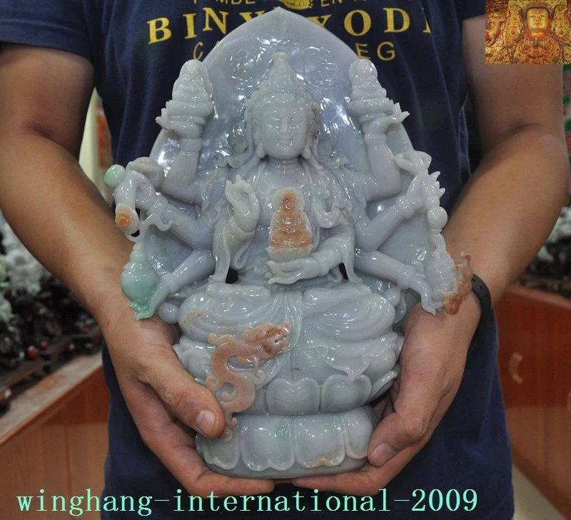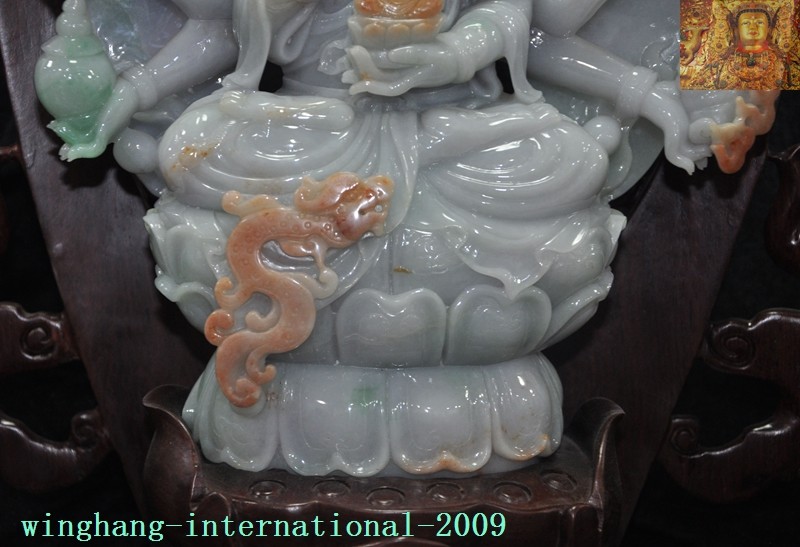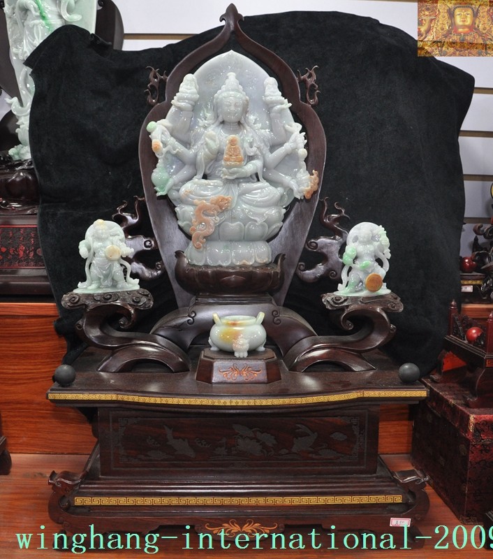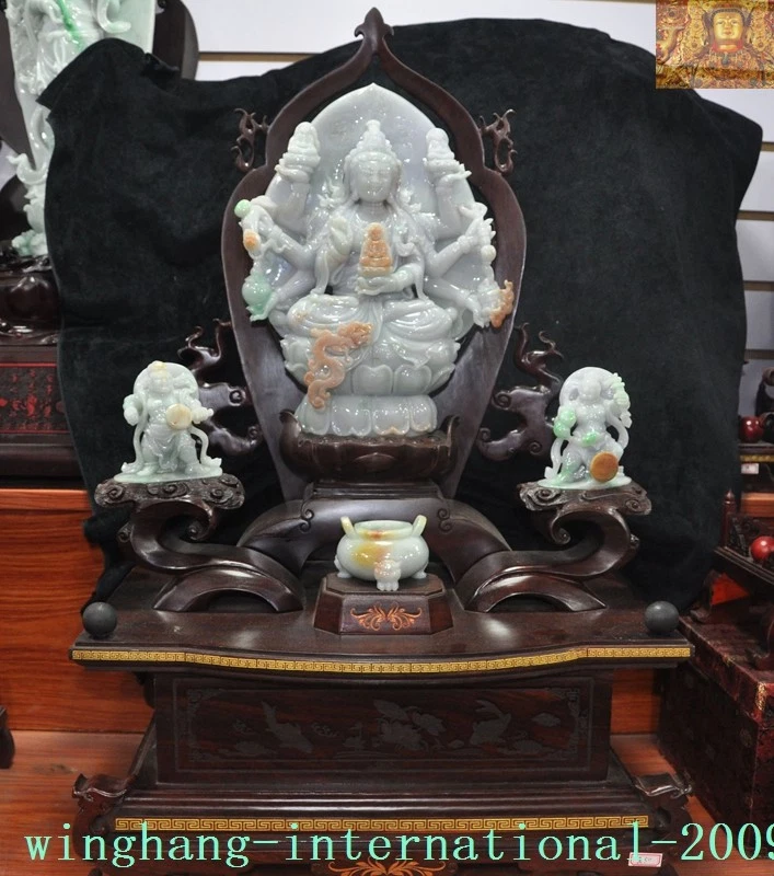 Here is an Old Chinese Buddhism Temple joss Natural Jadeite Emerald Jade Carved Guardian Two God Dragon Guanyin Kwan-yin Buddha Statue , As you can see the image, It is in good condition, and was created by skilled craftsmen in traditional style with fine handcrafts . This is a great piece of valuable collection, a valuable personal alter or a very good present. the handwork is very fine with incredible detailing. Don't miss out this chance to get it .Wish you good luck! Total size : Size: Height: 29 inch Length: 17.6 inch Width: 12.8 inch Size: Height: 73 cm Length: 44 cm Width: 32 cm Kwan-yin size : Size: Height: 12.8 inch Length: 9.2 inch Width: 3 inch Size: Height: 32 cm Length: 23 cm Width: 7.5 cm Guardian God size : Size: Height: 3.8 inch Length: 3.4 inch Width: 1.8 inch Size: Height: 9.5 cm Length: 8.5 cm Width: 4.5 cm incense burner size : Size: Height: 2 inch Length: 2.8 inch Width: 2.4 inch Size: Height: 5 cm Length: 7 cm Width: 6 cm Weight: 38 KG ---- Including the weight of the packaging material Material: Natural Jadeite Emerald Jade Condition: Good condition Origin: China Airmail EMS shipping (7-15 days): Free 18 07 31 N J B Y H 2&5