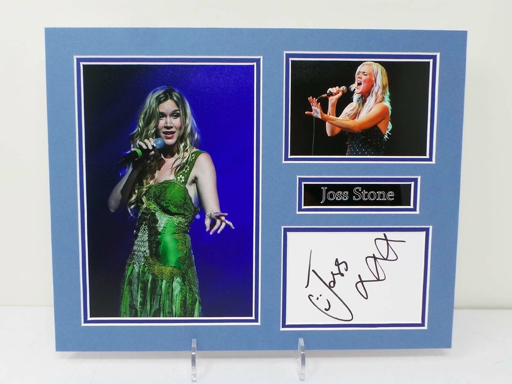 About the Item On offer here is a Mounted & Signed Montage by Joss STONE - - - Joscelyn Eve Stoker (born 11 April 1987), known professionally as Joss Stone, is an English singer, songwriter and actress. She rose to fame in late 2003 with her multi-platinum debut album, The Soul Sessions, which made the 2004 Mercury Prize shortlist. Her second album, the similarly multi-platinum Mind Body & Soul (2004), topped the UK Albums Chart and spawned the top-ten single "You Had Me", Stone's most successful single on the UK Singles Chart to date. Both the album and single received one nomination at the 2005 Grammy Awards, while Stone herself was nominated for Best New Artist, and in an annual BBC poll of music critics, Sound of 2004, was ranked fifth as a predicted breakthrough act of 2004. She became the youngest British female singer to top the UK Albums Chart. Stone's third album, Introducing Joss Stone, released in March 2007, achieved gold record status by the Recording Industry Association of America (RIAA) and yielded the second-ever highest debut for a British female solo artist on the Billboard 200, and became Stone's first top five album in the US. She released her fourth album, Colour Me Free!, in 2009, which reached the top 10 on Billboard. Stone released her fifth album, LP1, in 2011, which reached the top 10 on Billboard. Throughout her career, Stone has sold 15 million records worldwide, establishing herself as one of the best-selling soul artists of the 2000s, and the best-selling British artists of her time. Her first three albums have sold over 2,722,000 copies in the US, while her first two albums have sold over 2 million copies in the UK. Stone has earned several awards including two Brit Awards and one Grammy Award out of five nominations. She made her film acting debut in 2006 with the fantasy adventure film Eragon, and made her television debut portraying Anne of Cleves in the Showtime series The Tudors in 2009. Stone was the youngest woman on the 2006 Sunday Times Rich List—an annual list of the UK's wealthiest people—with £6 million. In 2012, her net worth was estimated to be £10 million, making her the fifth richest British musician under 30. The Soul Sessions Vol. 2 (2012) is her fourth consecutive album to reach the top 10 on the Billboard 200, with Australian producer Cam Noble. --- The signature is an original and authentic autograph given by the person listed above. This display was photographed on a plinth. The plinth is not included in the sale. This mount contains a 2 Photographs, an engraved plaque and a signed card The overall size of the mount measures 14 x 11 inches and comes with our Certificate of Authenticity About the Certification The item comes with a COA (Certificate of Authenticity) from us ( Matrix FRAMES ). We are a UK Limited Company, incorporated on November 14, 2011 (Company No. 07847089). Operating from a physical retail location, we have over a decade of experience in the industry, with a solid trading history filed with HMRC. Our business specializes in picture framing and memorabilia sales. For any inquiries, customers are welcome to contact us via telephone (landline), our website?s message page, or eBay?s contact member function. With extensive experience in the industry, we have participated in numerous private and public autograph signings and maintain affiliations with various registered dealer platforms. While our items do not come with third-party authentication, we are confident that they would pass such verification should buyers wish to submit them for assessment, either before or after purchase. Most of our new stock is personally obtained at UK events, ensuring authenticity and provenance. We are always happy to provide details about how and where specific items were acquired?just ask! At Matrix Frames & Displays, we pride ourselves on being approachable, responsive, and transparent. We welcome any questions, no matter how small, and encourage open communication to give you complete confidence in your purchase. This item was obtained, in person, by us or on our behalf. About Shipping Once items have been paid for and funds cleared in our paypal/bank account (depended on method of payment), your item will be swiftly shipped to you. We will package the item safely and use the appropriate service (listed below) to get your item to you as soon as possible. Signed photos will be shipped in hard backed envelopes whilst items may be packaged in bags or boxes. Our chosen shipping company is the Royal Mail who we believe, provide the best service for shipping our products to you. Terms & Conditions Please ensure you have read all the details of the auction (above & below) and are happy to proceed before choosing to buy. Paypal is the quickest way to pay and will speed up the processing of your order. However, we also accept cheques and postal orders. We aim for 100% satisfaction with every transaction and will take relevant steps to ensure you are happy with the service, as well as your purchased item.