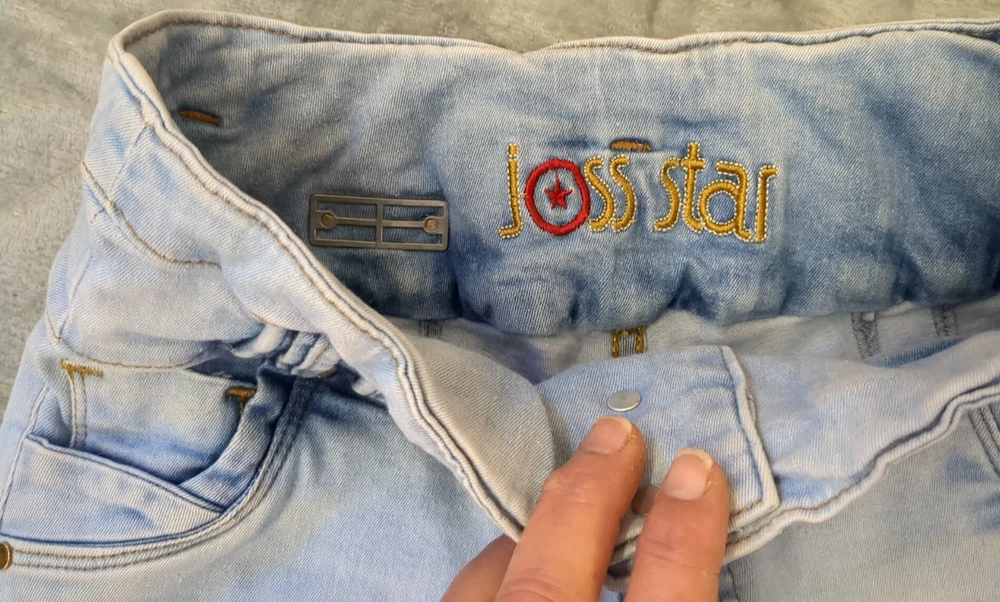 New Without Tags.... These Joss Star Women's Micro Denim Blue Jean Shorts in a size 7 feature a solid blue wash with a fringe, rhinestone, button, zipper, and logo accents. The shorts have a zip fly and button closure with a flat front and a 5-pocket design. Made of a blend of spandex and cotton, the denim fabric is lightweight, breathable, and stretchy for comfort. Perfect for casual occasions in the spring and summer, these NWOT shorts are machine washable for easy care. Size:7 Color: Blue Wash Bin:212.