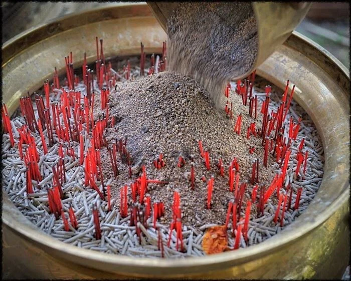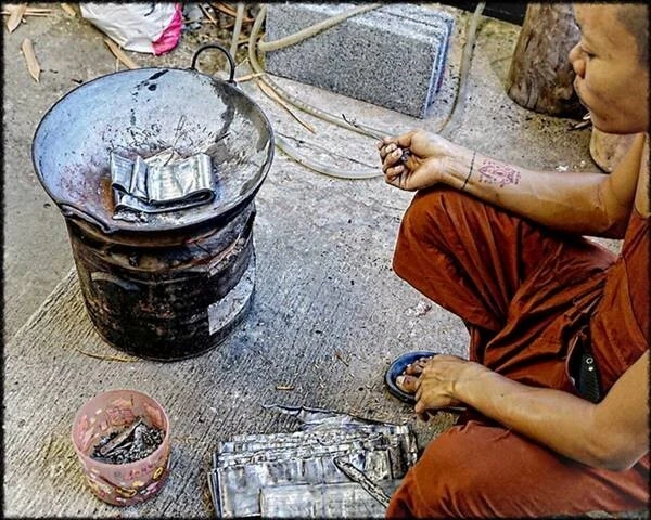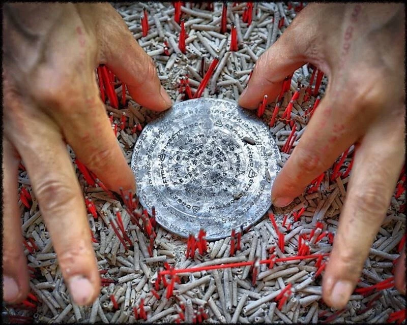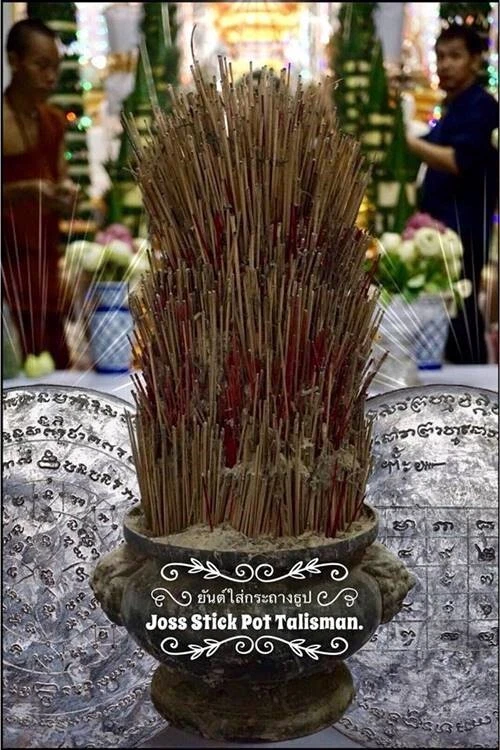 Joss Stick Pot Talisman by Phra Arjarn O, Phetchabun. One Of The 3 Necessary Worshipping Tool. When talking about worshipping method for the holy thing, there are 3 important items that are necessary consisted of 1.Flower 2.Joss Stick 3.Candle. The flower has a vase as its container, Candle has a candleholder as its container and Joss Stick has a joss stick pot as its container. The Joss Stick Pot Attracts People & Wealth. Therefore, when the relationship between worshipping method, joss stick and joss stick pot merge together. The perfect combination of these 3 things made the magic master in the former time created some magic subject and pass down to their disciples from generation to generation. One of those magic subjects that are outstanding from others is “Joss Stick Pot Talisman”. It is about how to make a talisman to place into the joss stick pot for luxuriance, wealth, attract good people and hasten the prayer’s wish to achieve as fast as possible. Sending A Wish To The Heaven. Phra Arjarn O also studied “Joss Stick Pot Talisman” subject from the magic scripture of LP.Kong. Phra Arjarn O took many kinds of "Mystical Lead" to melt and merge together with “Mercury” follows the ancient procedure which is very complex and need a lot of diligence. After that, Phra Arjarn O wrote specific Yant on “Joss Stick Pot Talisman” for both sides. These 2 Yant is very high and were justified to be important Yant for establishing Phra Pichai Songkram. Finally, “Joss Stick Pot Talisman” is finished and ready to send the wish of the prayer to 16 levels of heaven and 15 levels of underground. The front side was written with Yant “Maharlaruay” . This Yant is well-known in case of charm, progress, alluring hypnosis, calling good people to come. The prayer of this Yant will be well-beloved of everyone. People that you never know before will be familiar with you as a family & friend. Furthermore, this Yant also has mighty power as powerful as the lion king. It will protect the prayer from any dangers. In the magic scripture said that who has a chance to know this Yant is very lucky and will never suffer in life. The backside was written with Yant "Origin Of Wealth Of 4 Directions" . The Thai name of this Yant is "Jut-Tu-Lo-Bung-Kert-Sub". It is one of the well-known Yant that many people know how good is it but, fewer people know how to write and bless it to be powerful correctly. The ability of this Yant is very good to call money & luck, boosting sale, increase business opportunities and maintain a financial status to be stable and rising. In the magic scripture described this Yant that "If This Yant Was Written On Silver Plate, A Ton Of Money Will Come. If This Yant Was Written On Gold Plate, A Ton Of Gold Will Come." Moreover, When Thai people who believe in magic want to build a home, they will ask the magic master to write this Yant on silver plate & gold plate and bury it together with the main post of the home also. Holy Item Of The Lucky Millionaire. There is a story about “Joss Stick Pot Talisman” that relates to “LP.Kong” directly. The story about it happened during B.E.2524. There was a magic master who can contact with the spiritual body of LP.Kong correctly so, he has a lot of disciples around the southern part of Thailand. One day, one of his disciples went to meet that master and begged help from LP.Kong because his business was nearly bankrupt and he had no money for his wife and his children anymore. The magic master heard like that then he said “You had ever lighted joss stick to worship LP.Kong at my residence so, I will make a talisman for you to put inside the joss stick pot. You must plunge down joss stick to the joss stick pot everyday and then your life will be better.” Since the lucky disciple got “Joss Stick Pot Talisman” and did follow his master’s suggestion, he must felt amazed because there are many customers come to his shop and even some business partners want to accompany with his business. Finally, he could fix his financial crisis within a few months and become the well-known millionaire. After his life was changed by LP.Kong, he declared himself to be a supporter of 4 meditation retreats of LP.Kong until he died. The Key Of Spiritual World. Ghosts Obey The Fire, Angles Obey The Candle. The joss stick & candle like as the mediator between the real world and the soul world. It like as the key of connection between human and invisible things. The old age people has belief that "Ghosts obey the fire, Angels obey the candle". People always light the joss stick & candle to borrow the power of angels and gods to help for their wishes. Mystical Lead Transformed To Be Joss Stick Pot Talisman. - “Joss Stick Pot Talisman” made from many kinds of mystical lead such as Love Lasso Lead, Fist Net Trap Lead, Special Mercury For Merging Lead Together and especially "Lead Cinerarium". In the magic world, there is a belief that "Lead" is the special substance rather than others substance can have because of 2 reasons. 1."Lead" is the best substance for absorbing those spiritual power of the ocean because "Lead" is the convenient substance that has been used for receiving spiritual & magical power since the ancient time by the magician. 2."Lead" is one of neccessary item for using in magical ceremony since human know how to use spell until the present time. For example, "Cursing Lead Of Greece" is the best evidence that can refer to special properties especially the magical charisma of lead because it was used to be an equipment for cursing ritual during the Golden Age of ancient Greece. The archeologist found "The Lead Inscription With Ancient Greece Alphabets" in the underground grave that has age more than2,400 years. People in that time called this lead inscription as "Katares". Those Katares were inscriptions etched into lead, sometimes found with figurines. They were often buried in the graves of youths because it was believed a pre