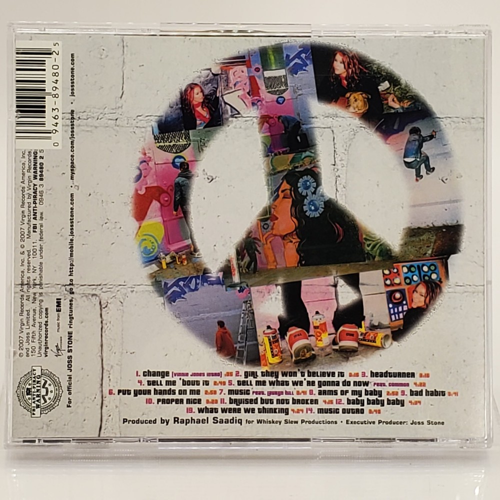 This CD is a fantastic addition to any music lover's collection. With Joss Stone's powerful vocals and a mix of pop, rock, and blues genres, this album is sure to impress. Released in 2007, this CD is in great shape and comes in a standard jewel case. The inlay and case are both in very good condition. Featuring the hit single "Tell Me 'Bout It," this album showcases Stone's unique sound and talent. The CD has been graded as Very Good (VG) and is an original release from the United States. Don't miss out on the opportunity to own this great piece of music history.