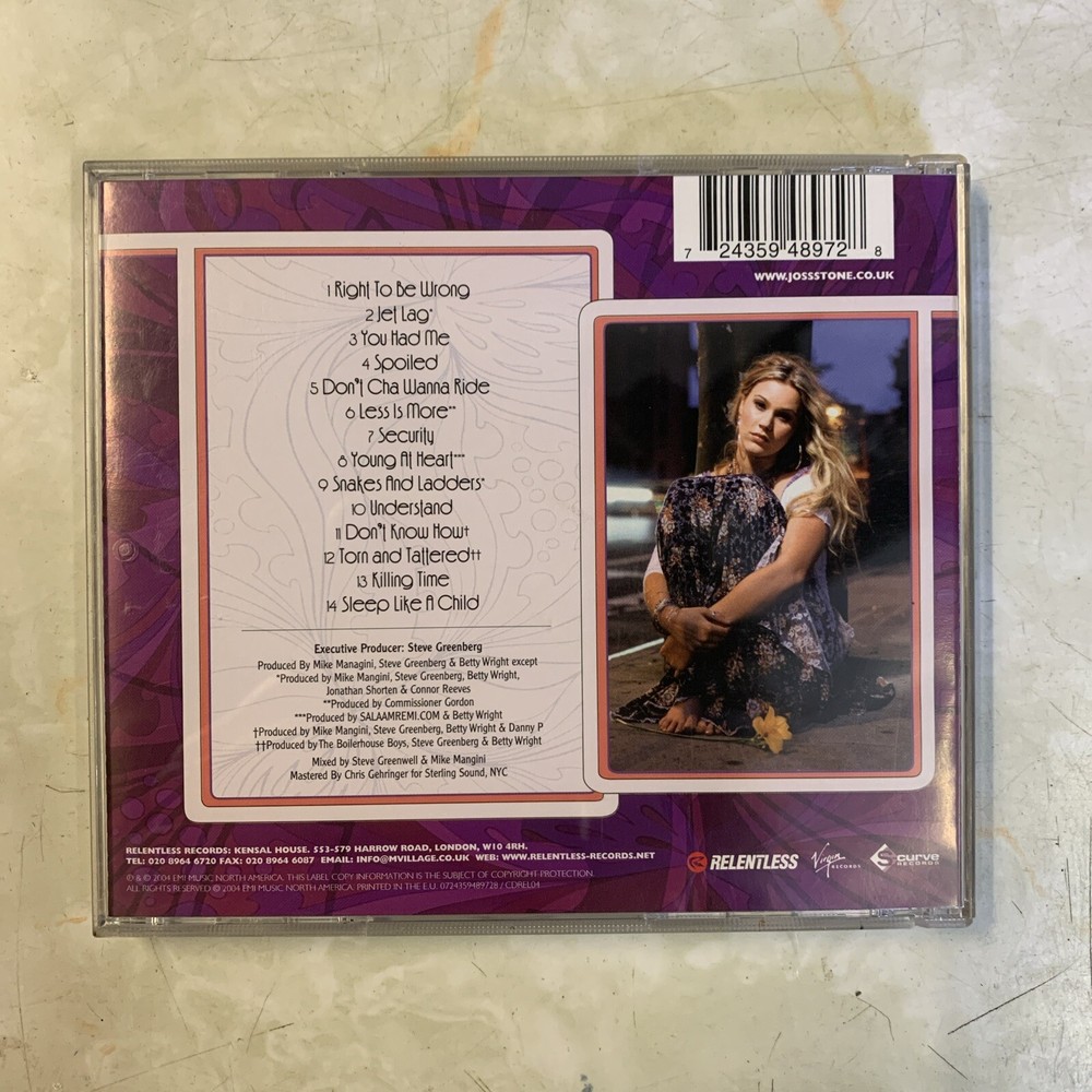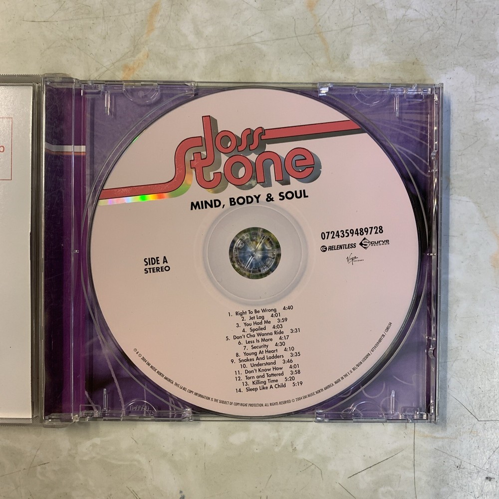 Excellent condition Immerse yourself in the soulful sounds of Joss Stone with this CD album, featuring the release title "Mind, Body & Soul". Enjoy the smooth vocals and captivating instrumentals of this Neo-Soul masterpiece, with a run time of 4314 seconds. Indulge in this excellent quality CD, produced by S-Curve and released in 2004. With its studio recording and R&B & Soul genre, this album is a must-have for any music lover. Appreciate the talent of Joss Stone on the organ, as she takes you on a musical journey through the 2000s era.