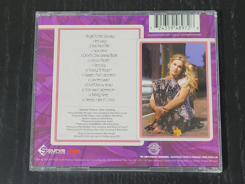 Joss Stone: Mind, Body & Soul EMI Records. From a smoke-free, pet-free home. Disc has some minor marks on them, and it doesn't affect its use. See pics. Pics were taken under bright lights & the camera at 3x. All CDs were fully listened to and tested on my laptop. If they skipped, they were not listed for sale. Songs: Right to be wrong Jet lag You had me Spoiled Don't cha wanna ride Less is more Security Young at heart Snakes and ladders Understand Don't know how Torn and Tattered Killing Time Sleep like a Child Out of print. Should assume that the case may have some minor shelf wear as to be expected. Shipping will be in a box for its protection