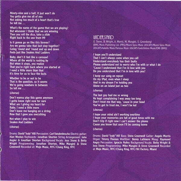 Store Home Save Seller Our Feedback View Products Contact Us PRICE NOW REDUCED TO MAKE WAY FOR NEW STOCK Combine orders - Max £10 shipping Buy as many as you like for £10 shipping! Joss Stone - Mind Body & Soul (CD) This is a stock image. The actual item condition is detailed in the listing. Please contact us if you need any additional information. Artist Joss Stone Title Mind Body & Soul Label S-Curve Records, Virgin Cat No 17243 8 66203 2 3, 7243 8 66203 2 3, 7243 8 66203 23, 7243 8 66203 23 Format 1 x CD Album, Copy Protected, Stereo Format Quantity 1 Media Condition Very Good Plus (VG+) Sleeve Condition Very Good Plus (VG+) Condition Comments ### PRICE NOW REDUCED TO MAKE WAY FOR NEW STOCK ### - IMAGES ARE STOCK IMAGES, AND MAY NOT REPRESENT THE FINAL PRODUCT. 1 Right To Be Wrong 4:40 2 Jet Lag 4:01 3 You Had Me 3:59 4 Spoiled 4:03 5 Don't Cha Wanna Ride 3:31 6 Less Is More 4:17 7 Security 4:30 8 Young At Heart 4:20 9 Snakes And Ladders 3:35 10 Understand 3:46 11 Don't Know How 4:01 12 Torn And Tattered 3:58 13 Killing Time 5:20 14.1 Sleep Like A Child 5:19 14.2 (silence) 10:08 15 Daniel 2:46 PRICE NOW REDUCED TO MAKE WAY FOR NEW STOCK PLEASE NOTE! IMAGES ARE STOCK IMAGES, AND MAY NOT REPRESENT THE FINAL PRODUCT. PLEASE READ PRODUCT LISTING CAREFULLY FOR ANY DEFECTS OR VARIATIONS. About Retro-Rarity Our primary aim is to deliver first rate customer service and competitive prices on the products that we offer. The most important thing to our business are our customers and we take great care to ensure every customer is totally satisfied with their order. We try to place ourselves in the position of the customer in terms of what we would expect to receive in terms of service and quality of the goods being sold. We have in excess of 150,000 items in stock, ready to be shipped to meet our customers requirements and if you ever decide to sell your collection, we will even buy them back from you. We always offer competitive prices for any collection. Why Retro-Rarity ? Items are dispatched using 2nd class Royal Mail postage. On larger orders we use the most cost effective tracked and insured shipping option Buy through our online store with PAYPAL giving buyers peace of mind. We offer an extensive selection covering all genres and formats of rare & deleted vinyl records and CD’s. Over 60,000 products available from our online store. Fast UK & Worldwide Shipping All goods under £20 in value are shipped with proof of postage. All goods over £20 in value are tracked and insured. We are available 10am - 5:30pm Monday - Friday. Grading System We use the following grading system to stipulate the condition of items we offer for sale. Note: ON CD's- Standard Jewel Cases: Standard Jewel Cases are not graded as they are replaceable. Mint (M) Vinyl: Absolutely perfect in every way. Certainly never been played, possibly even still sealed. CD: Perfect. No scuffs/scratches, unplayed - possibly still sealed. The insert/Inlay/Booklet/Sleeve/Digipak: Perfect. No wear, marks, or any other imperfections - possibly still sealed. Near Mint (NM or M-) Vinyl: A nearly perfect record. A NM- record has more than likely never been played, and the vinyl will play perfectly, with no imperfections during playback. The record should show no obvious signs of wear. A 45 RPM or EP sleeve will have no more than the most minor defects, such as any sign of slight handling. An LP cover will have no creases, folds, seam splits or other noticeable similar defects. The same will be true of any other inserts, such as posters, lyric sleeves, etc. CD: Near perfect. No obvious signs of use, it may have been played - but it has been handled very carefully. Insert/Inlay/Booklet/Sleeve/Digipak: Near Perfect. No obvious wear, it may have only the slightest of marks from handling. Very Good Plus (VG+) Vinyl: A Very Good Plus record will show some signs that it was played and otherwise handled by a previous owner who took good care of it. Defects should be more of a cosmetic nature, not affecting the actual playback as a whole. Record surfaces may show some signs of wear and may have slight scuffs or very light scratches that don't affect one's listening experiences. Slight warps that do not affect the sound are "OK". Spindle marks may be present. Picture sleeves and inner sleeves will have some slight wear, slightly turned-up corners, or a slight seam split. An LP cover may have slight signs of wear, and may be marred by a cut-out hole, indentation, or cut corner. CD: A few minor scuffs/scratches. This has been played, but handled with good care - and certainly not abused. Insert/Inlay/Booklet/Sleeve/Digipak: Slight wear, marks, indentations, it may possibly have a cut-out hole (or similar). Very Good (VG) Vinyl: Many of the defects found in a VG+ record will be more pronounced in a VG disc. Surface noise will be evident upon playing, especially in soft passages and during a song's intro and fade, but will not overpower the music otherwise. Groove wear will start to be noticeable, as with light scratches (deep enough to feel with a fingernail) that will affect the sound. Labels may be marred by writing, or have tape or stickers (or their residue) attached. The same will be true of picture sleeves or LP covers. CD: Quite a few light scuffs/scratches, or several more-pronounced scratches. This has obviously been played and not handled as carefully as a VG+. Insert/Inlay/Booklet/Sleeve/Digipak: More wear, marks, indentations than a VG+. May have slight fading, small tears/rips and possibly some writing. Good (G), Good Plus (G+) Vinyl: A record in Good or Good Plus condition can be played through without skipping. But it will have significant surface noise, scratches, and visible groove wear. A cover or sleeve will have seam splits, especially at the bottom or on the spine. Tape, writing, ring wear, or other defects will be present. While the record will be playable without skipping, noticeable surface noise and "ticks" will almost cert