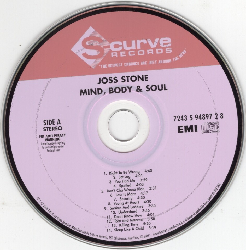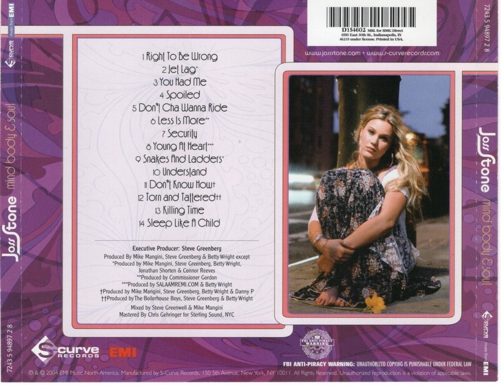 Joss Stone "Mind, Body & Soul" with "Right To Be Wrong", "You Had Me", "Spoiled", "Don't Cha Wanna Ride", "Killing Time", and more. CD