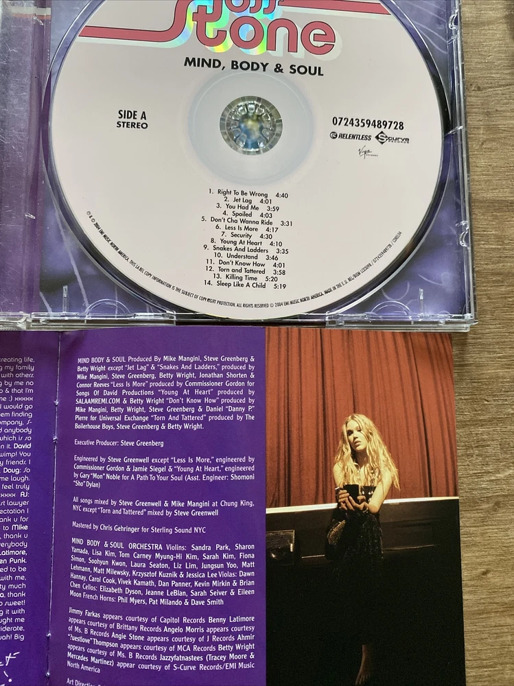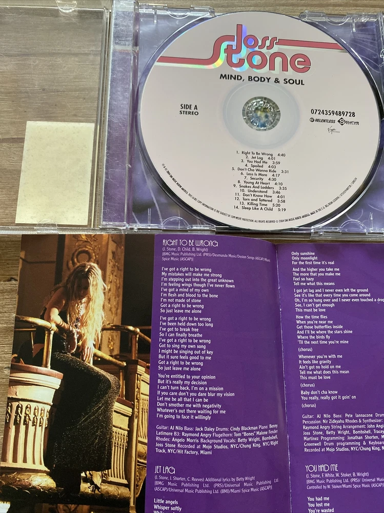 Joss Stone - Mind Body and Soul CD - 2004 - Very Good Bargain. General condition is good. The disc has been fully tested and plays really well. Please see my other auctions for more music, movies and other media. Due to Royal Mail price increases, you have 2 options at the checkout: If you choose Royal Mail Large Letter postage option (the more expensive) , the CD will be sent WITH the jewel case. If you choose Royal Mail 2nd Class Letter / Large Letter (the cheaper option), the disc and artwork WITHOUT a jewel case will be sent to you (in a plastic sleeve). The international shipping cost is the option WITH the jewel case unless requested to be sent without it.