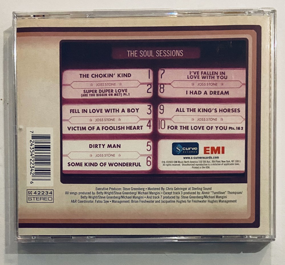 Joss Stone, The Soul Sessions CD. Debut album. 2003. CONDITION: Gently used CD in very good condition. Item pictured is exact item you will receive. Buy with confidence... see our feedback. SHIPPING: Expedited and foreign shipping available. Please see our rates. We will not undervalue or mark items as gifts for overseas shipping. All taxes and duties the responsibility of foreign buyer. See our store for more collectible CDs and DVDs!