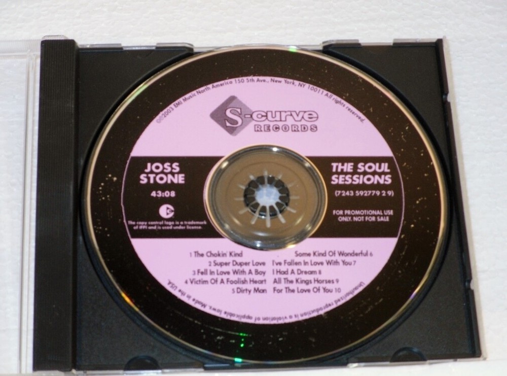 Joss Stone - Soul Sessions Promotional ONLY CD in a standard CD case Virgin Records Us - 724359277929 Copyright 2003 NO INSERTS 1. Choking Kind 2. Super Duper Love (Are You Diggin On Me) 3. Fell In Love With A Boy 4. Victim Of A Foolish Heart 5. Dirty Man 6. Some Kind Of Wonderful 7. I've Fallen In Love With You 8. I Had A Dream 9. All The King's Horses 10. For The Love Of You 549364-53.59 Included (Free) Shipping is by MEDIA MAIL, with a delivery time of 7 to 20 days CURRENTLY IT HAS BEEN TAKING LONGER. This is an ESTIMATE and NOT GUARANTEED. If You want FASTER delivery, upgrade to First-Class Package *** PICTURE MAY NOT BE OF ACTUAL ITEM ***