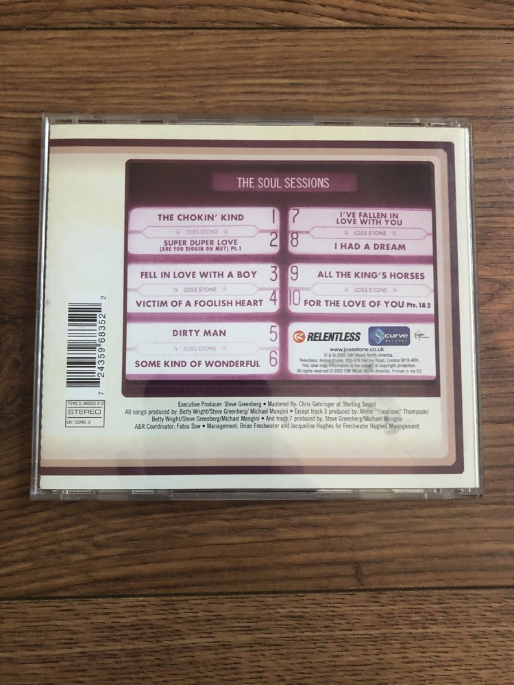 Joss Stone's "Soul Sessions" is a 2003 CD album released by Relentless. The studio recording features a mix of alternative and R&B & Soul genres, with all tracks performed in English. The album comes in a standard jewel case and has a duration of a full-length recording, making it a must-have for fans of Joss Stone's soulful music.