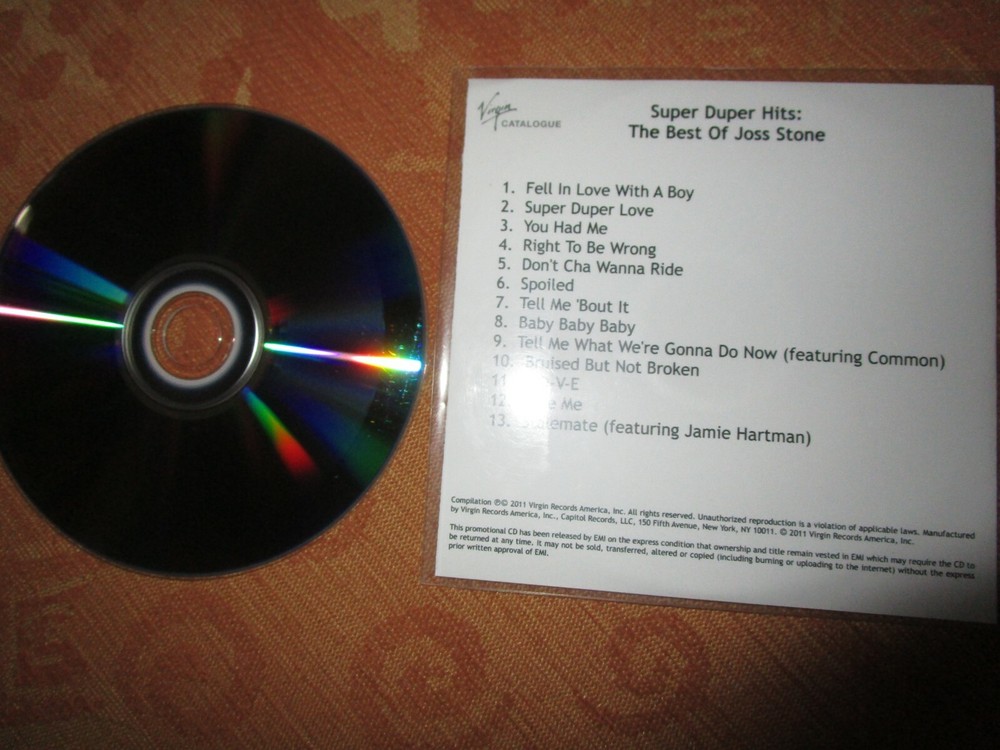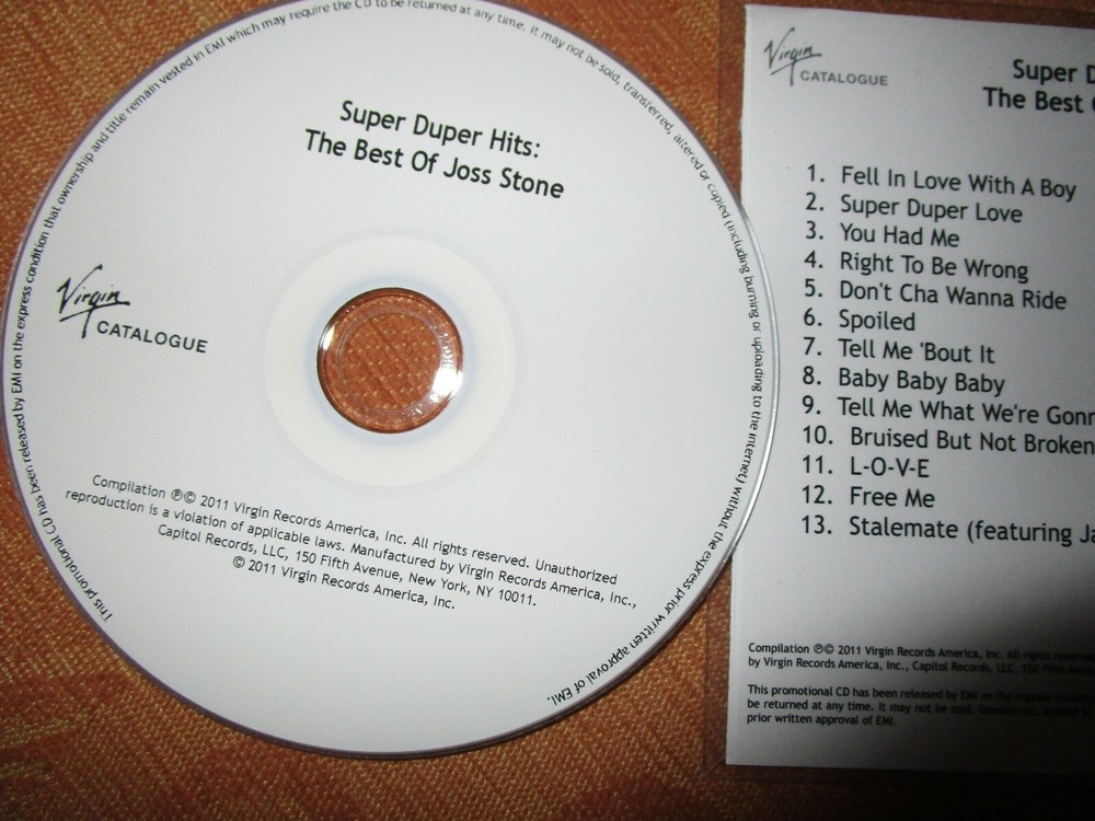 Joss Stone – Super Duper Hits: The Best Of Joss Stone Virgin Records Promo CD Album Tracklist 1 Fell In Love With A Boy 2 Super Duper Love 3 You Had Me 4 Right To Be Wrong 5 Don´t Cha Wanna Ride 6 Spoiled 7 Tell Me ´Bout It 8 Baby Baby Baby 9 Tell Me What We´re Gonna Do Now (Featuring – Common) 10 Bruised But Not Broken 11 L-O-V-E 12 Free Me 13 Stalemate (Featuring – Jamie Hartman)