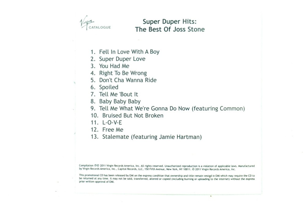 Joss Stone Super Duper Hits / The Best Of Virgin Records Promo CD Album 2011 CD Condition : VG+ Sleeve Condition : VG+ Please Ask Any Questions Always Happy To Combine Postage, Please Wait For A Combined Invoice Before Making Payment. All Items Despatched Via Signed For Delivery Service Postage Within The UK Only