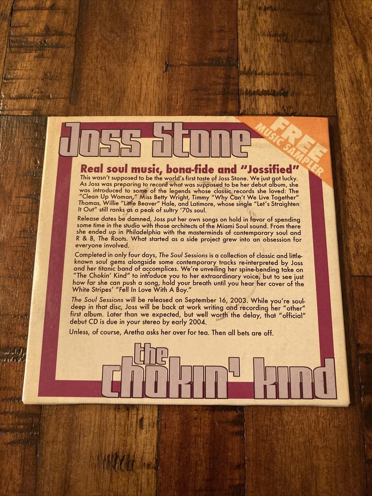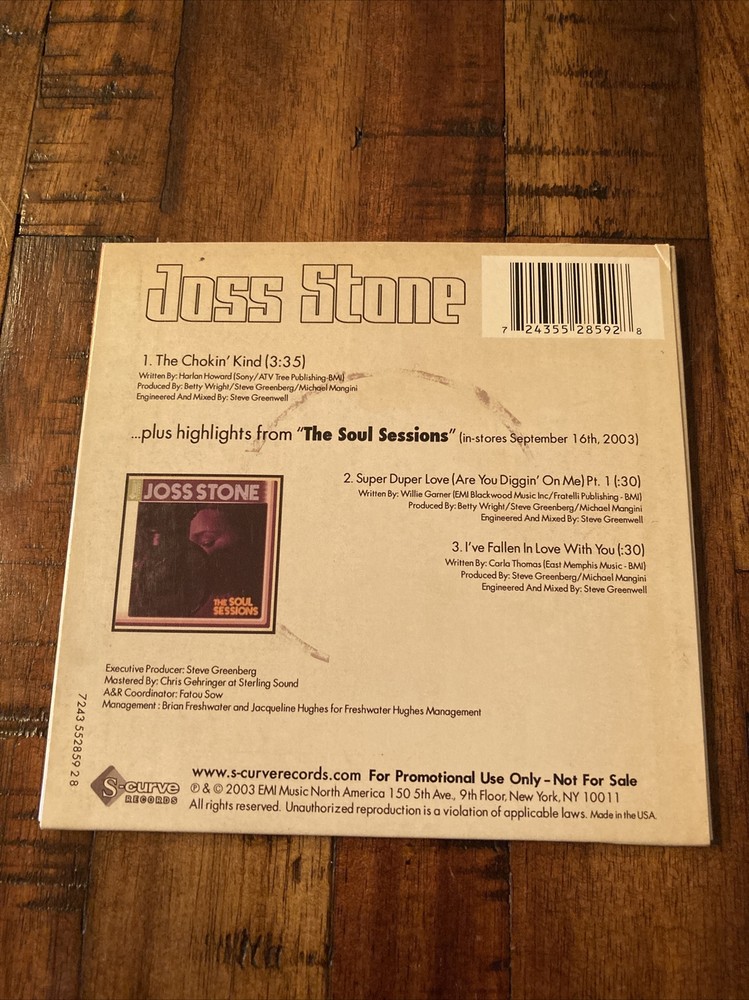 Joss Stone – The Chokin' Kind PROMO CD from personal collection hence initials on items 2003 S-Curve Records – 285928 Thank you for looking. I've decided that some items from my collection (cassettes, 7" vinyl, 12" vinyl, CD's, VHS, DVD's...) can go to a new home. Stay tuned... Plenty more in store, anything you are looking for?