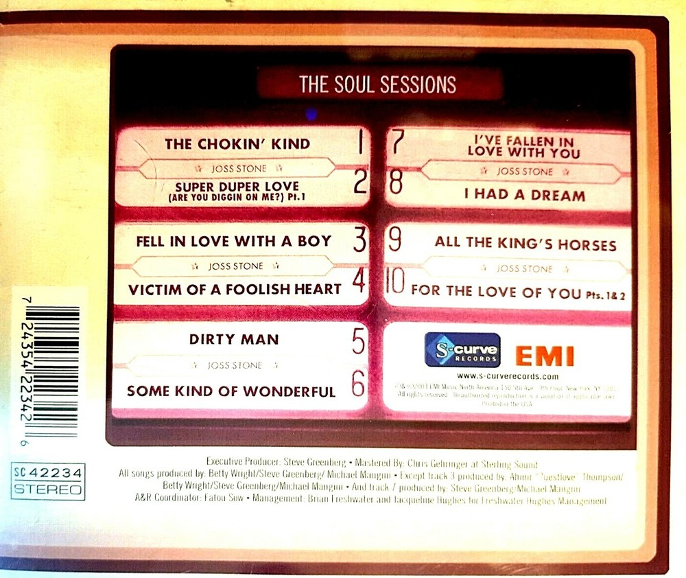 "JOSS STONE" "THE SOUL SESSIONS" S CURVE RECORDS / SC 42234 7243 5 42234 2 6 / EMI RECORDS 350 RPM / MADE IN USA