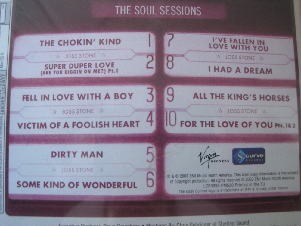 Joss Stone, The Soul Sessions CD - VGC See last photo for track list Please look at the other items I am selling If you have any questions feel free to contact me and I will answer them as best and as quickly as I can. I only offer a return in the unlikely event that the item is not as described. However all items that I sell are items that I would be happy to receive myself. We are a clean, smoke free house. We are happy to post worldwide but please contact us before bidding to enable us to provide accurate postal costs. We will also give a postage discount for multiple purchases.