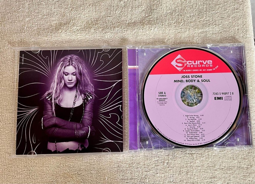 Joss Stone's "Mind, Body & Soul" CD in mint/excellent condition from S-Curve Records (USA), UPC 0724359489728. Released on September 28, 2004, by Virgin Records, the CD is very good with all inserts included and no visible damage to the disc. Note: The front side of the case is cracked. Photos are included in the description. This item comes from a non-smoking household. No returns accepted.