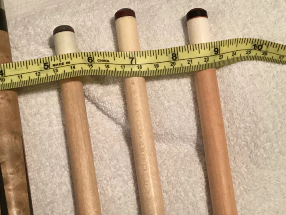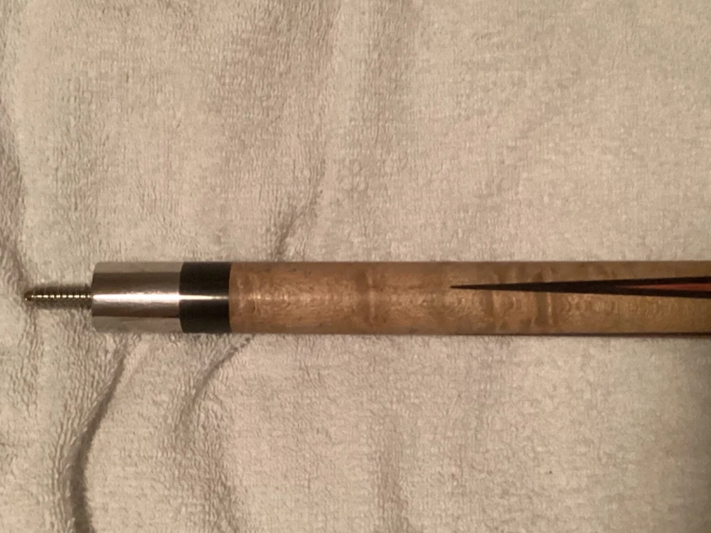 Joss West Bill Stroud 1975 Custom Pool Cue - Very Rare - One of One - 17oz - 4 Point Inside 4 Point Black And Red - 3 Shaft’s - Middle Shaft Original With Cue - Other Two New From Bill When He Retired to Ruidoso, New Mexico (Paid $500 per Shaft) - This Cue Was Refurbished by Bill When I Had New Shafts Made for This Cue and Other - Had a New Butt Plate Replace The Other was Cracked - Cleaned - For Diameter of Shafts See Picture #7 - No Offers Below Starting Price - This is a Rare Joss West From 1975 That Bill Only Made 3 Off - All Were Different Inlays and Designs - Picture 8 is Bill’s Normal Butt Size 4” on the 3 Special Cues Butt is 3 9/16” Picture 9 - All 3 Cues were made for pro’s in Tulsa,Ok His Home Town Then - This Cue Was Jeff Melton’s - C.J. Wiley Own one of the Others - Can’t Remember Who Bill Said the Other Guy Was. See Other Auction - Shipping Will Have Insurance and Delivery Confirmation. This Information Came from Bill when he was refurbishing the Cue. He also tried to buy it from me at that time this was around 2011. He made and offer of around $16000 in cues and Shafts for it. He was very Honest about how rare this cue was. If Other Questions Just Ask, Will Try and Answer