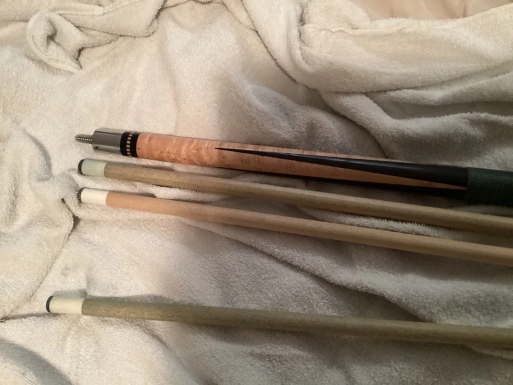 Joss West Bill Stroud 1979 Custom Pool Cue - 3 Shaft’s - 4 Point - Owned Since New - 20 1/2 Oz - Shaft 1 - 29 1/2” New From Bill When He Retired to Ruidoso, New Mexico (Paid $500) - Shaft 2 - 29 5/8” Original Shaft When Bought New - Shaft 3 - 29 5/8” Predator 314 - For Diameter of Shafts See Picture #5 - Also Will Be Listing A Rare Joss West From 1975 That Bill Only Made 3 Off - All Were Different Inlays and Designs - See Other Auction - Shipping Will Have Insurance and Delivery Confirmation
