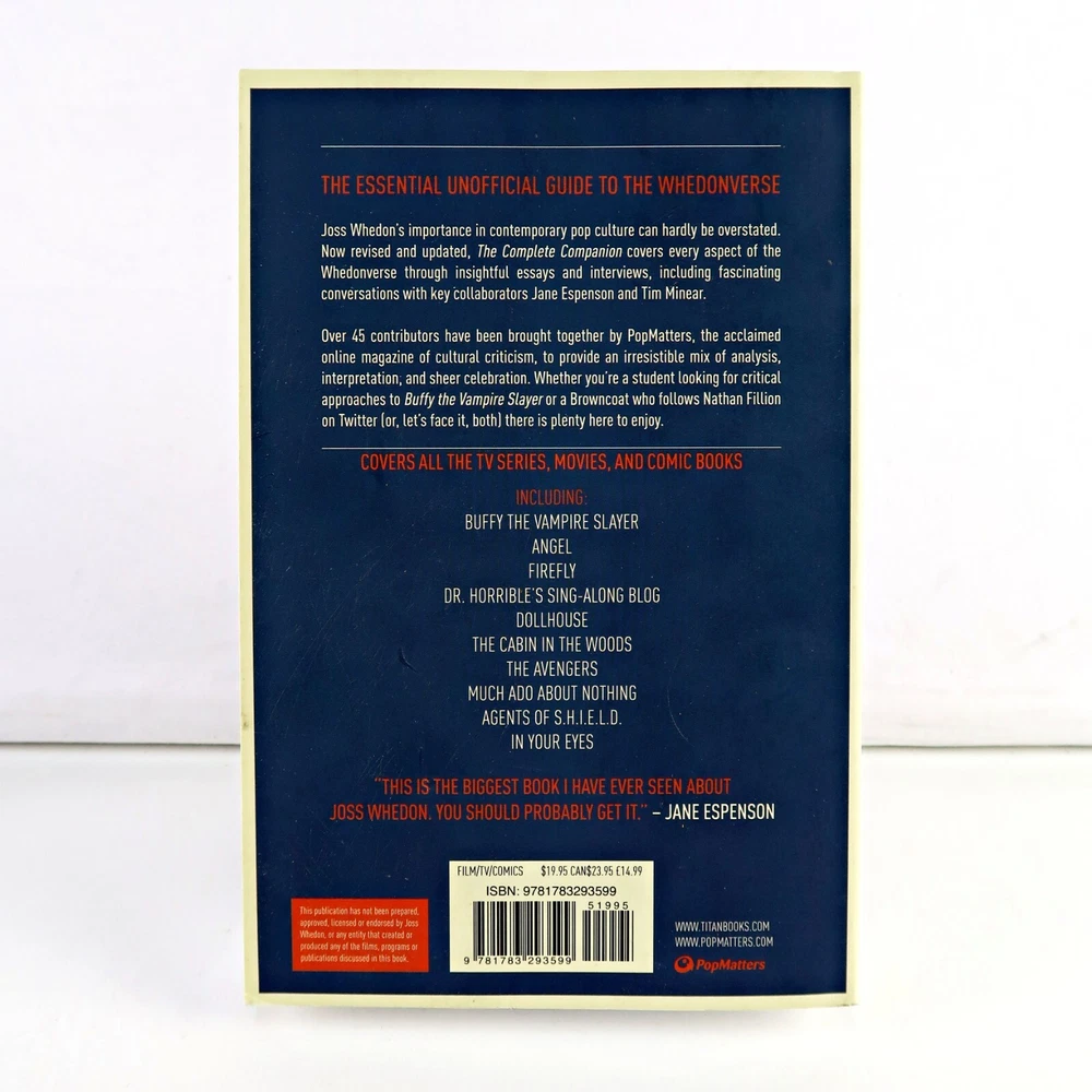 Joss Whedon: The Complete Companion: The TV series, the movies, the comic books and more {{itemdescription}} Features {{itemfeatures}} Details {{itemdetails}} Fast and Free Shipping You're already purchasing the item. Why pay additional for domestic postage, especially slow postage? We get your order shipped out within 1-business day and delivered to you as quickly as possible. Competitive Pricing With our dynamic pricing model, our prices are always competitive. Our prices are some of the lowest that you will find on the internet. Rest assured that you're getting a good deal when purchasing with us. 30-day Money Back Guarantee We are committed to making sure that you leave this transaction satisfied. We offer 30 day returns.