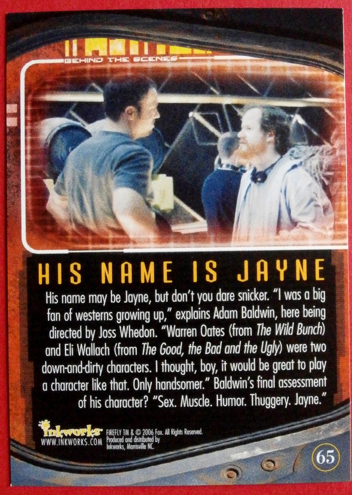 Joss Whedons Firefly Card 65 His Name is Jayne Inkworks 2006