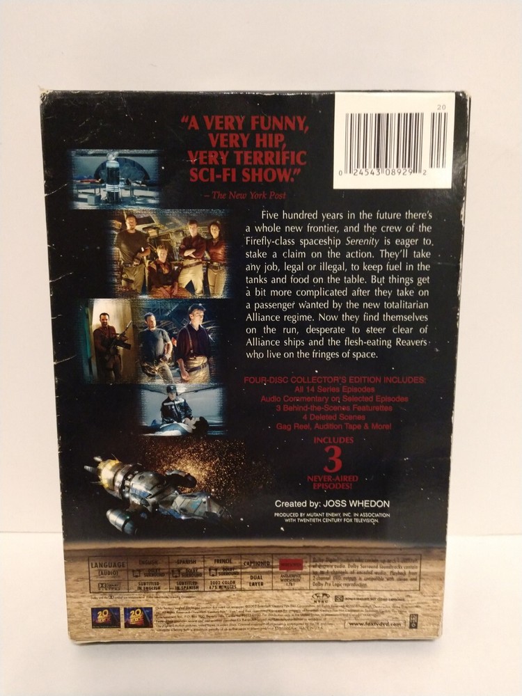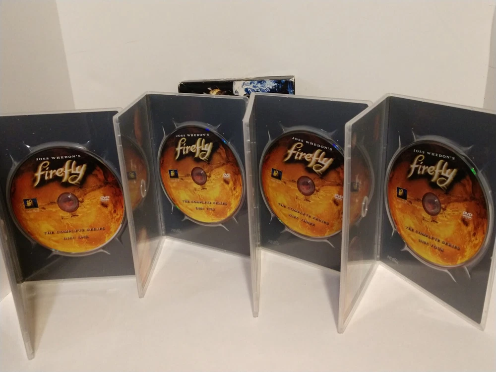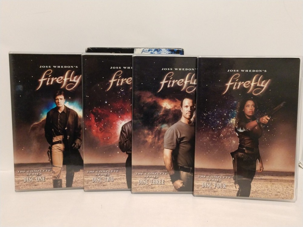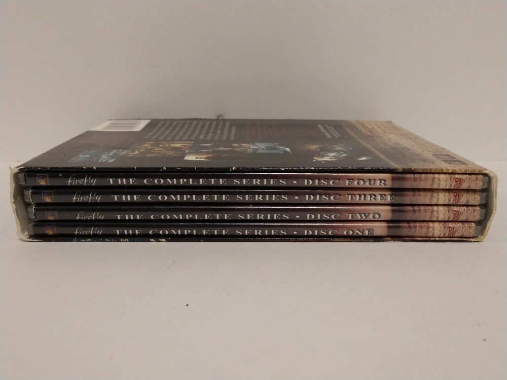 You are purchasing a Pre-Owned DVD Item Joss Whedon's FIREFLY DVD Set ~ The Complete Series 4-Disc Set ~Good Condition See Pictures This item is Pre-Owned but in good condition. SHIPPING INFORMATION Shipping for this item will be USPS Mail shipping with tracking included! CUSTOMER SERVICE REFUND POLICY: If it is MY mistake, I will do a full refund and/or try to fix the order. Please READ all information Before Purchasing this item. Customer Service is very important to me.... I do my best to send items out within 3 Mailing Days of auction payment receipt. I leave feedback when I know that you have received your items and have left feedback for me... Please check out my feedback!!