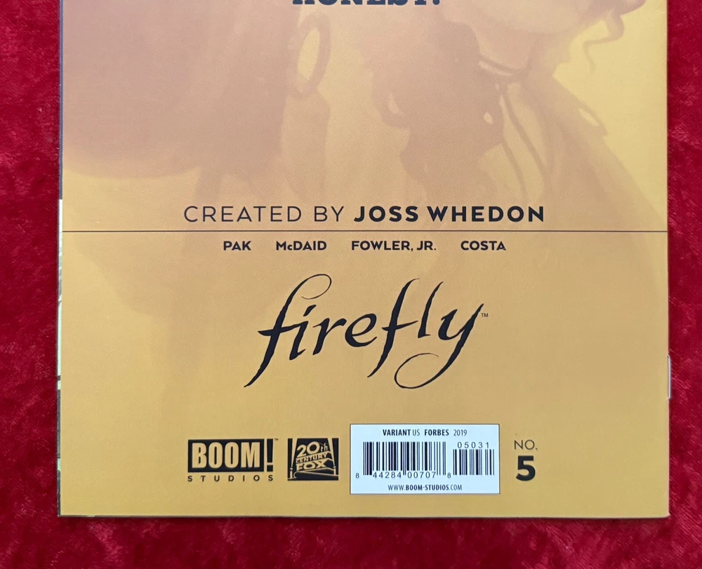 Firefly #5 1:15, Boom, 2019 Writer: Greg Pak; Artist: Dan McDaid Refer to photos for condition, feel free to ask questions I pack all comics in bags and boards, sandwiched between cardboard, and then they ship in a Gemini mailer (oversize comics or large orders may use alternate shipping container).
