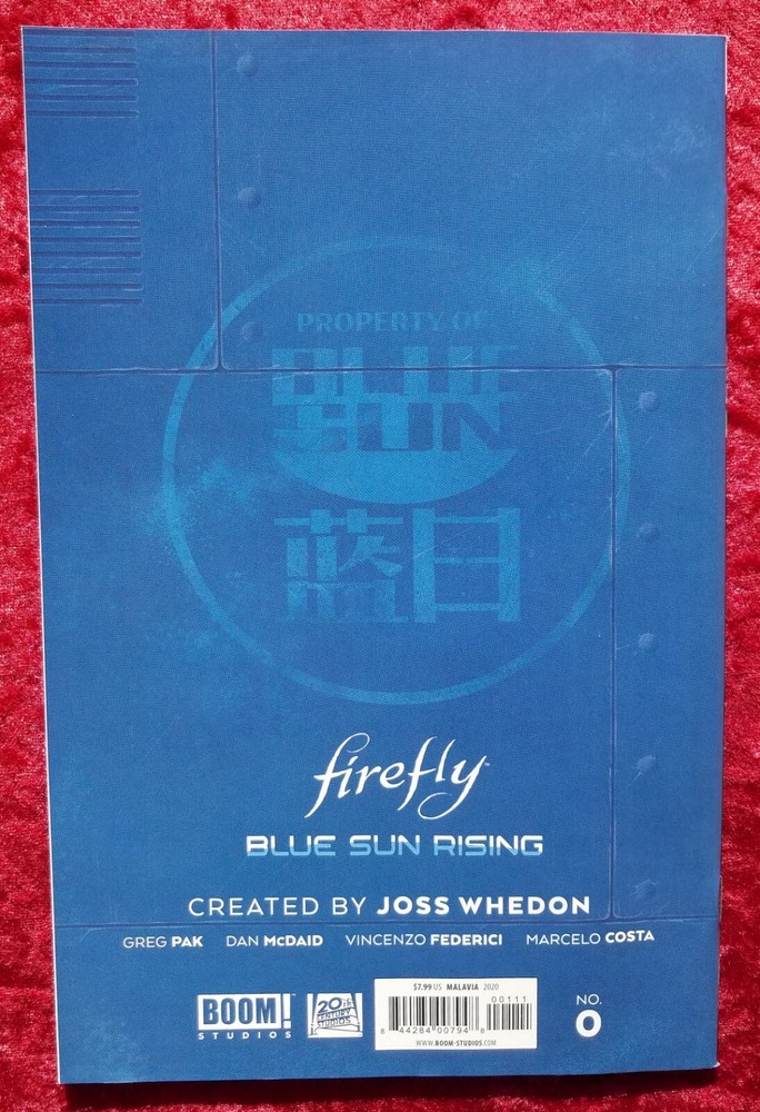 Firefly: Blue Sun Rising #0, Boom, 2020 Writer: Greg Pak; Artist: Dan McDaid Refer to photos for sample, all available copies equivalent condition, feel free to ask questions I will combine shipping on multiple comics! When possible, hit the "i" in the upper right corner of the cart to request an invoice to avoid overpaying shipping (and waiting for a refund)