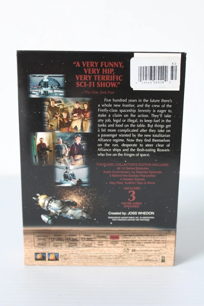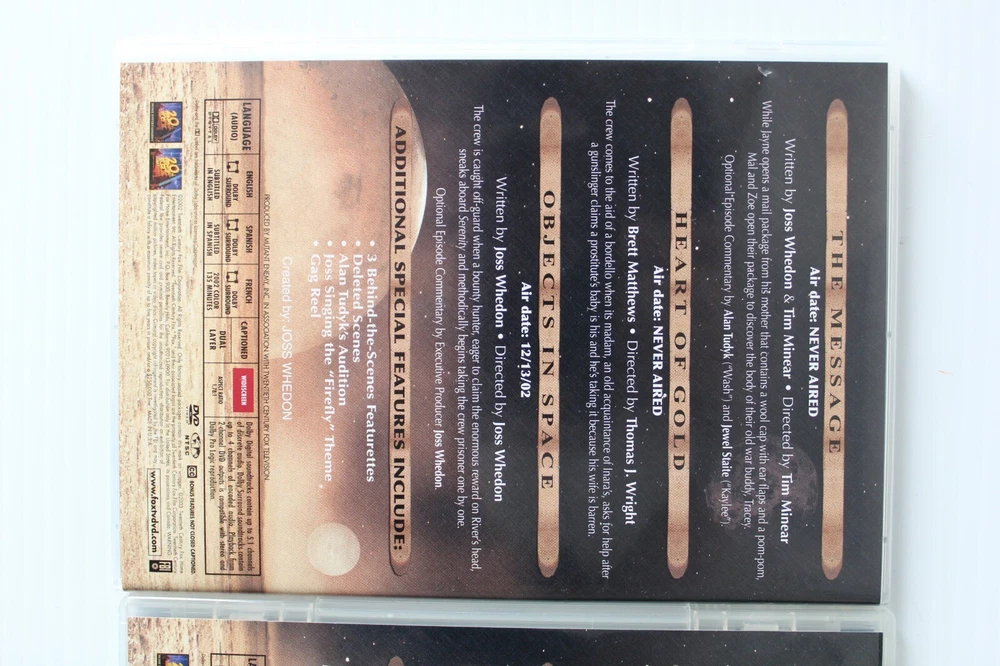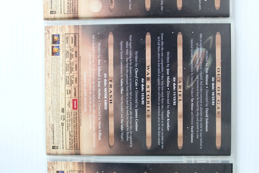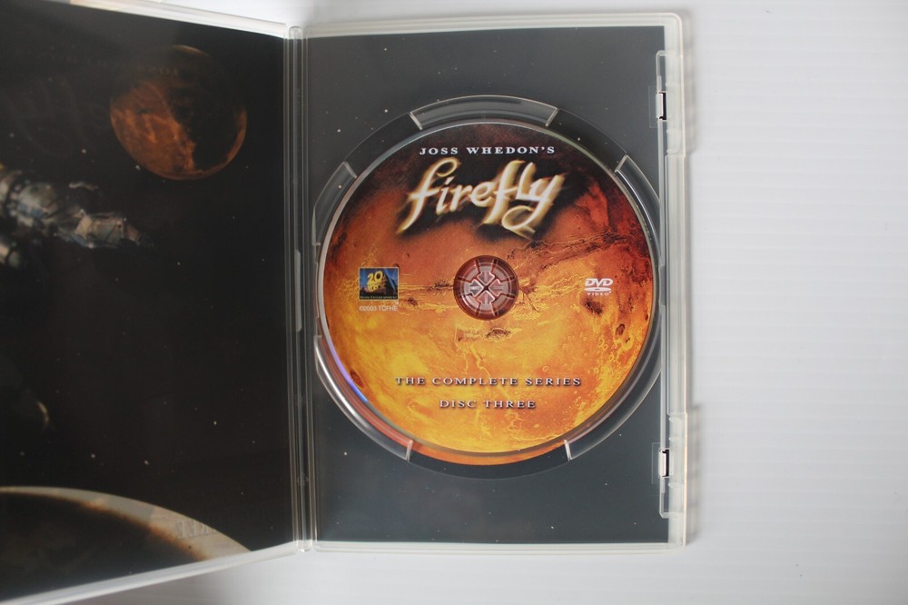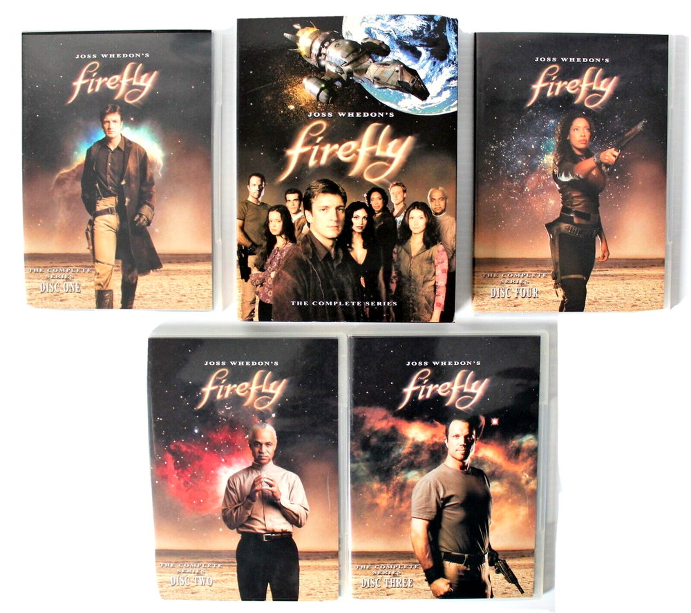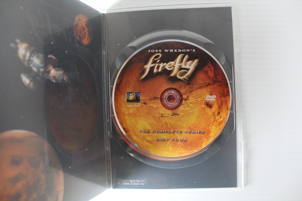 Joss Whedon's Firefly: The Complete Series w/ 3 Additional Episodes 4 DVDs 2002 This Collector's Edition set includes the complete series of Firefly from 2002. The series is presented on 4 DVDs with a run time of 675 minutes. It includes 3 never-aired episodes. widescreen format Questions are welcome. I will pack this carefully for prompt shipping. All 4 discs are in excellent, clean condition. The inner cases are also in excellent condition. Minor scratches on the bottom of the outer, cardboard slipcase. Please review the photos.