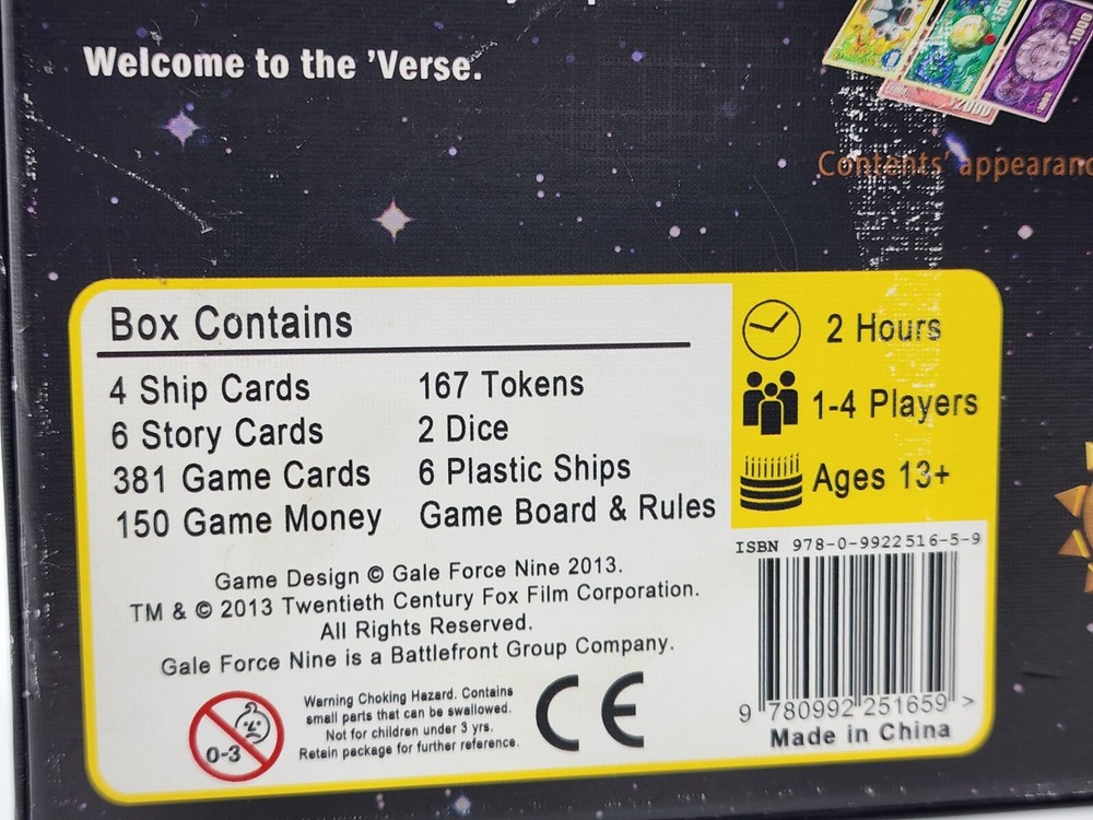Joss Whedon's Firefly The Game - Gale Force Nine 2013 Listed As Used But Is Open Box New ... Never Played ... Box Has Wear ... See HD Pictures