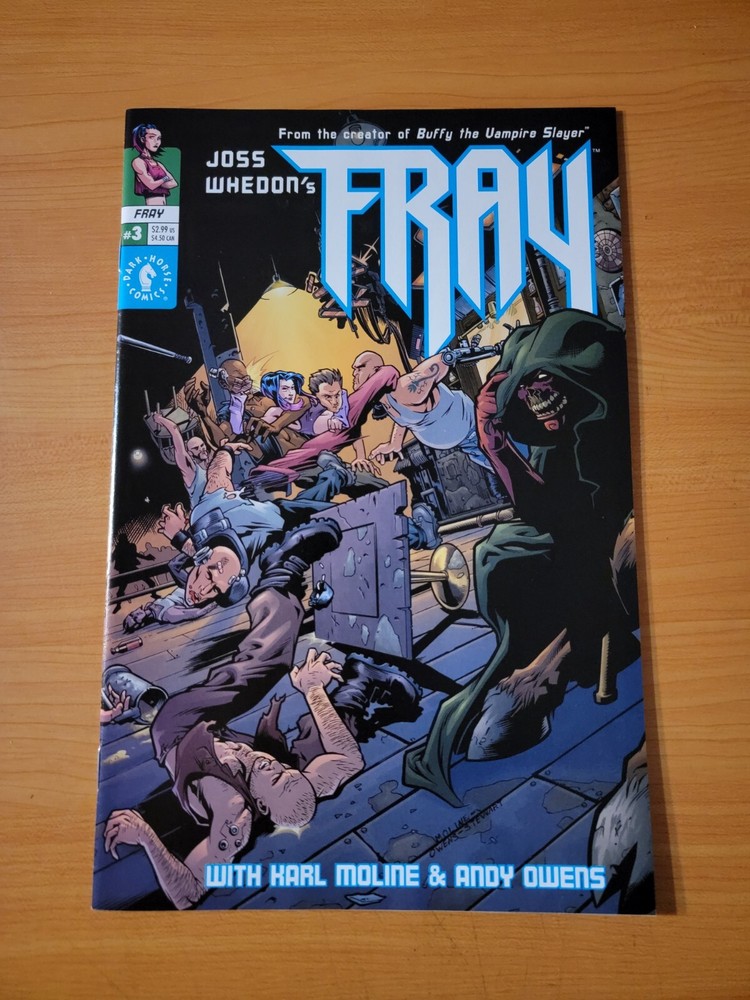 Item Description Joss Whedon's Fray #3 Publisher: Dark Horse Comics Published: 2001 Item Grade/Condition Grade: NEAR MINT For more information about this grade and other grades, please see our grading standards . ~ WE TAKE HIGH DEFINITION PICTURES OF OUR COMICS ~ For more detail use the ZOOM Function and check them out yourself! ~ Shipping Info: United States: Comic Book & Magazine Orders of all sizes, big and small ship for a flat Single Shipping Charge International: We use Calculated Shipping! ~ This insures that you get the LOWEST POSSIBLE COST! ~ Please give us on e business day to calculate large orders! The Calculator for eBay is pretty bad for international, contact us if you are looking to order multiple books so we can help you make it work on the back end! As a courtesy to our customers, we insure all orders over 50$ US ~ YOU DONT PAY EXTRA! Delivery Time We process and ship all orders within 1 business days. Once shipped, estimated U.S. transit time is 2-10 business days; international 14-21 business days. (Orders placed on Friday afternoon as well as weekends will be shipped the next business day as we do not ship on the weekends). Packing Omnomax Traders has mastered packing to ensure our orders of a "damage-free transport." Using the following methods, we have seen a nearly perfect 99% success rate for undamaged comics! Here is how our orders ship: All Orders : Bagged AND Boarded, ALWAYS NO EXCEPTIONS! Shipped in a Gemini Comic Mailer OR Tightly secured between 4x stiff pieces of corrugated cardboard (double Sandwiched) Sealed on all 4 sides with strong packing tape (Items doesn't even wiggle).: *Now this method is nearly perfect! however we have seen damage happen to items ( only once or twice a year ) ~ this is often due to bad handling by the postal service. Always remember to contact us if this happens! we are committed to quality service!*