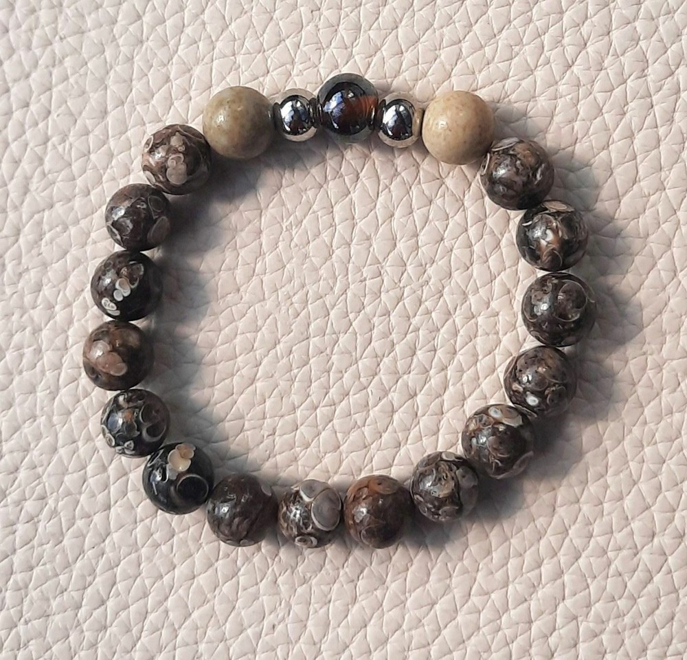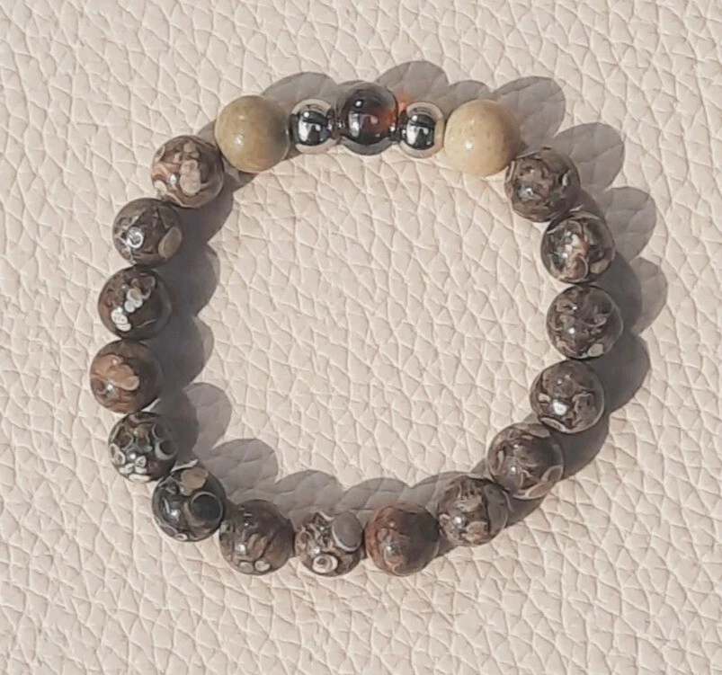 Absolutely love this bracelet! The mix of turntella, jasper, and stainless steel beads gives it a stylish yet earthy vibe. It’s lightweight, comfortable, and stretches perfectly for easy wear. The colors and textures make it versatile—dresses up any outfit effortlessly. Great quality for the price!