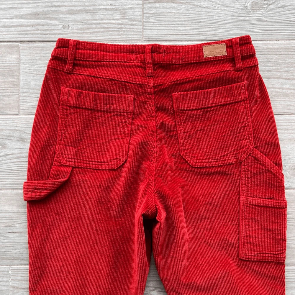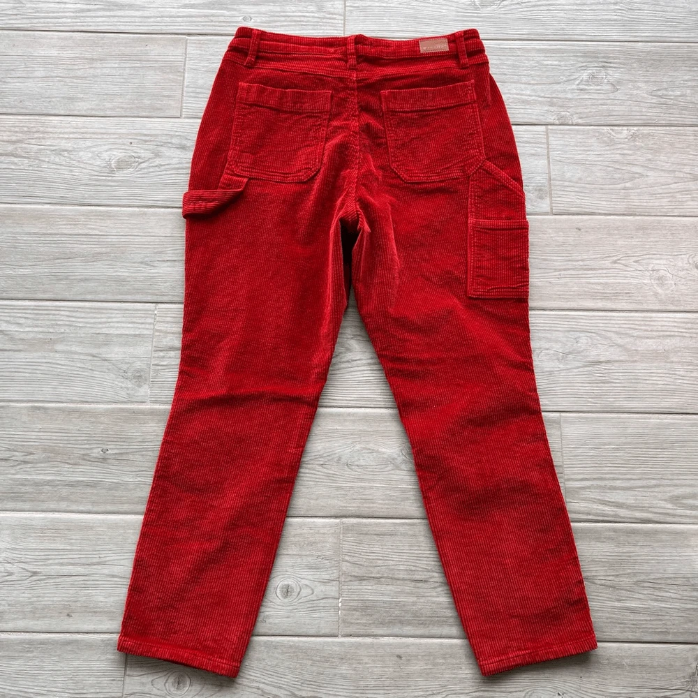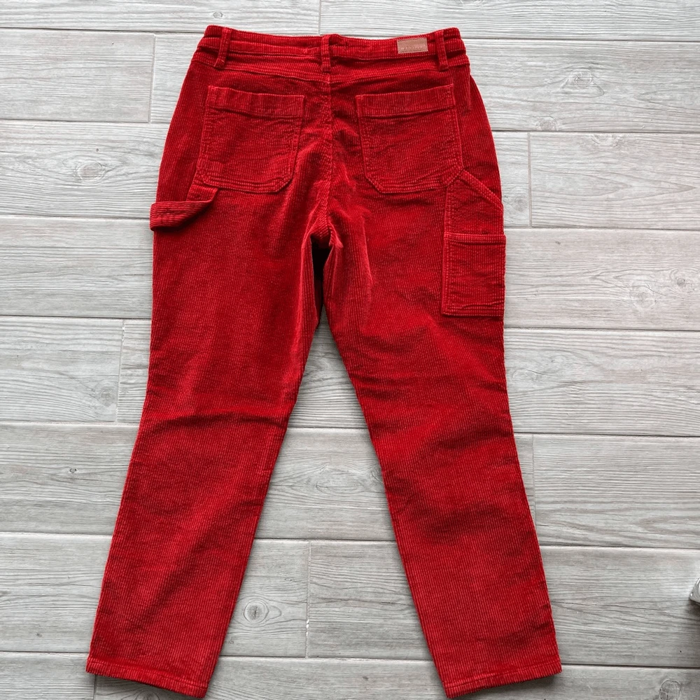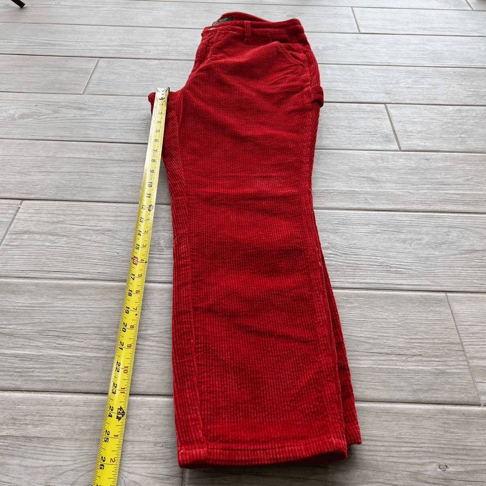 Judy Blue Womens Red Five Pocket Mid-Rise Slim Fit Corduroy Pants Size 29 I would say is more of a brick 🧱 color Brand: Judy Blue Department: Womens Size: 29 Color: Red Type: Pants Style: Corduroy Fit: Slim fit Rise: Mid-rise Closure: Button and zipper fly closure Length: Full-length Pattern: Solid Material: 98% Cotton, 2% Spandex Condition: Pre-owned in excellent condition Features: • Classic 5-pocket design • Belt loops • Copper-tone Judy Blue branded button • Carpenter-style side pocket detail • Judy Blue branded leather patch on the back waistband • Stretchy fabric Approximate Measurements: Waist: 15.5 inches Inseam: 26 inches Length: 37.5 inches Please see the photos for complete details. Let me know if you need any help. Thank you for visiting my store!