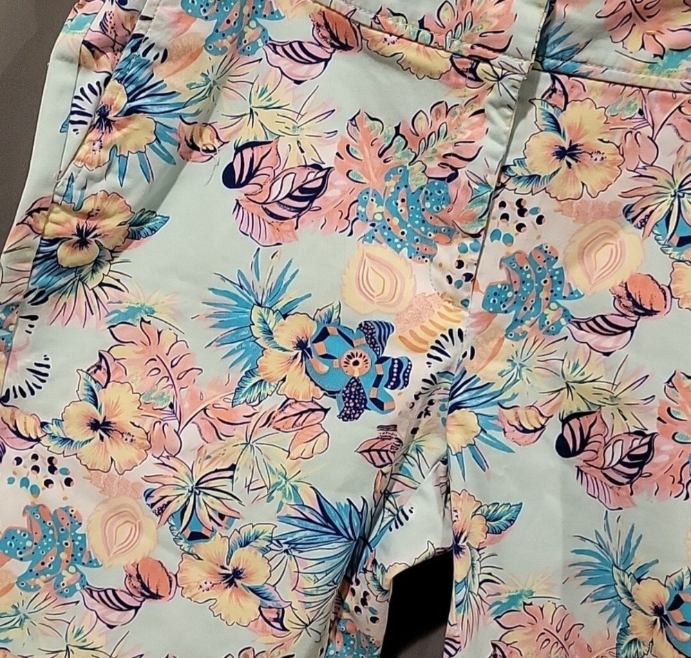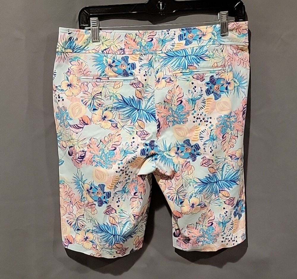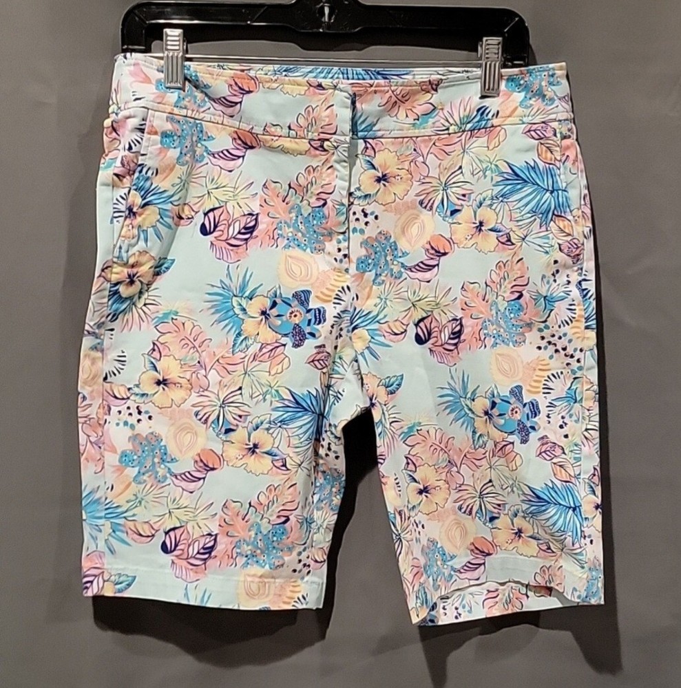 used in very condition Juniper + Lime size 8 shorts waist measures 16 inches leg measures 9 inches side of shorts for the length is 19 inches long inseam between legs is 9 inches Ship within 1-2 days
