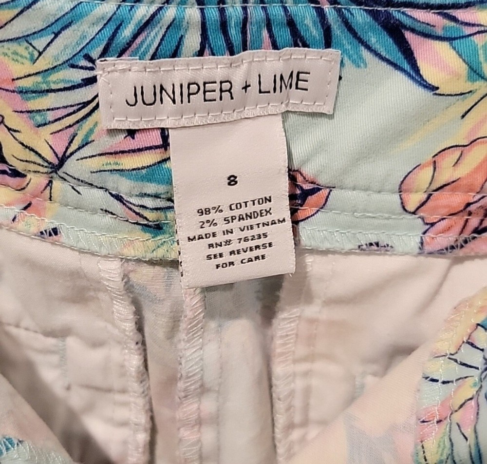 used in very condition Juniper + Lime size 8 shorts waist measures 16 inches leg measures 9 inches side of shorts for the length is 19 inches long inseam between legs is 9 inches Ship within 1-2 days...