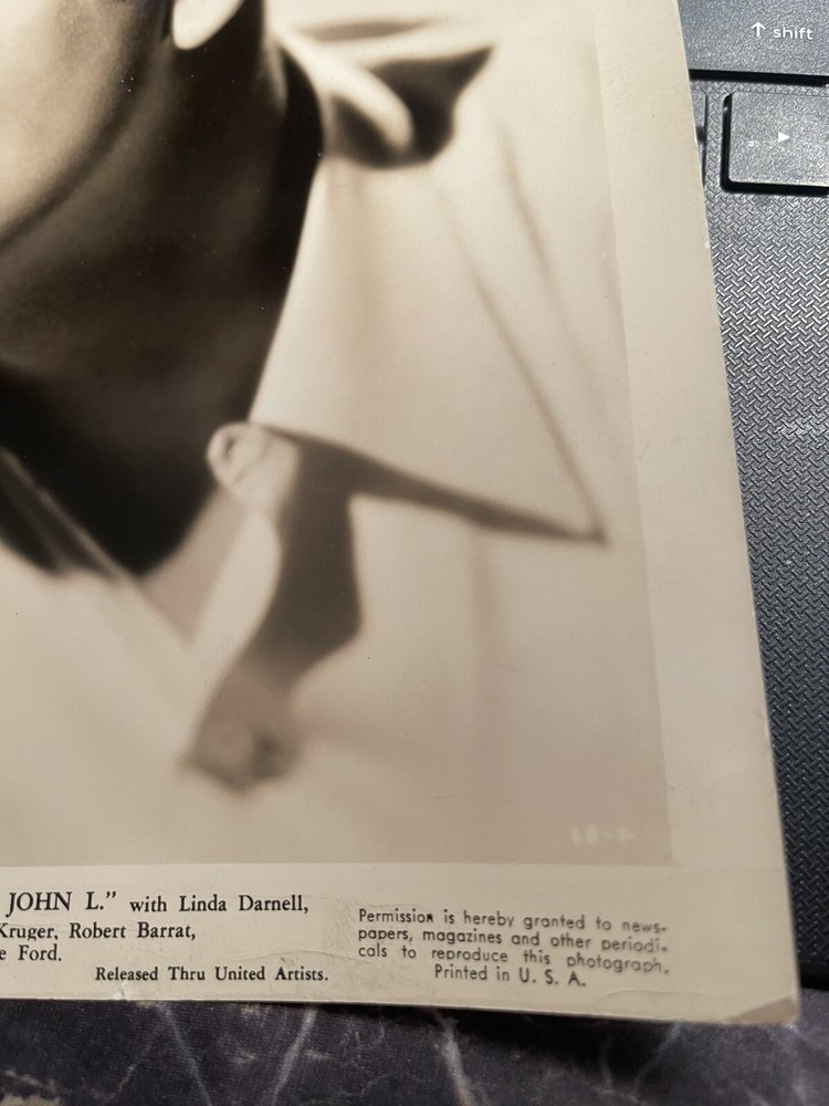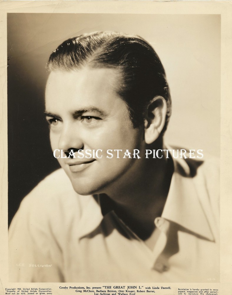 Classic Star Pictures is not on the actual photo, it is a watermark I put on the scan. Lee Sullivan close-up The Great John L 1945 8 x 10 vintage movie still. This photograph is in good condition. Please look at the scan carefully. Classic Star Pictures is not on the photograph. It is a watermark that was added to the scan to prevent copies being made. This item is being sold as a collectors item. It is an original still from my collection. This is a photograph, not a DVD or VHS movie. Check back often, as we are always upgrading our inventory.Thanks for Looking at my Listings,