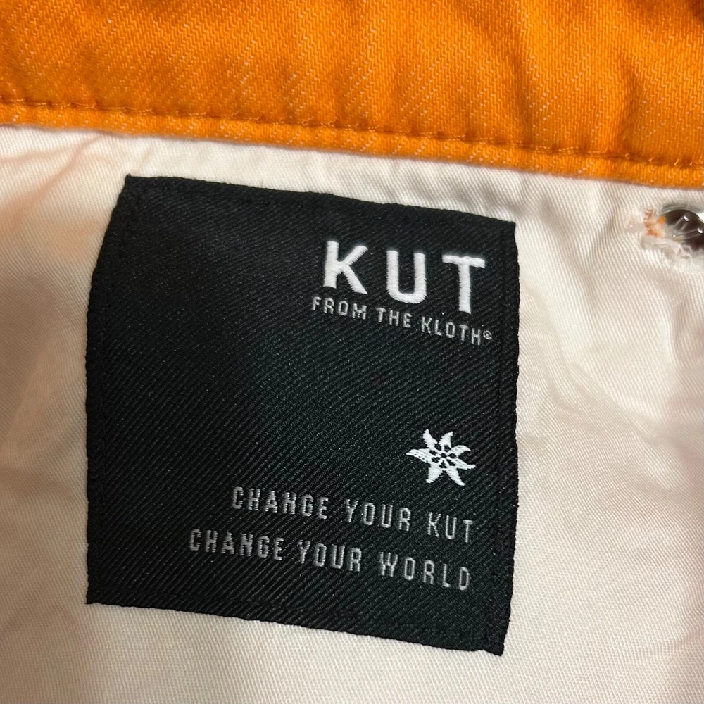 KUT from the Kloth Shorts Size 2 Orange Denim Gidget Fray Short Mid Rise Stretch Great Used Condition No Flaws Noted Measurements Laying Flat 14.5” Waist 11” Rise 3” Inseam...