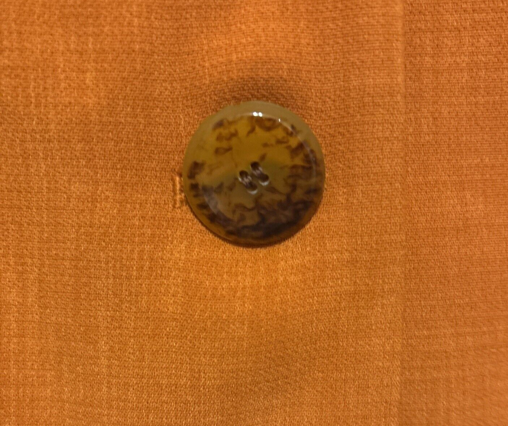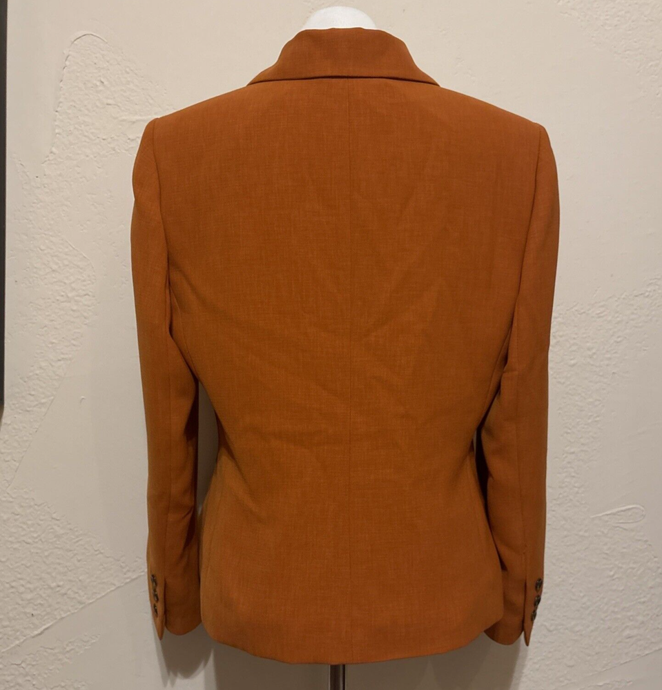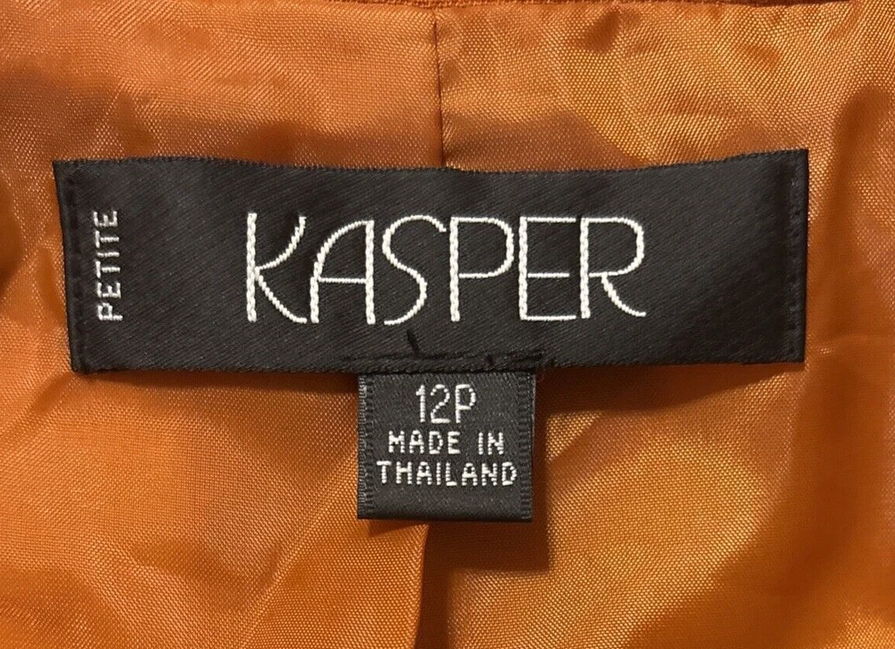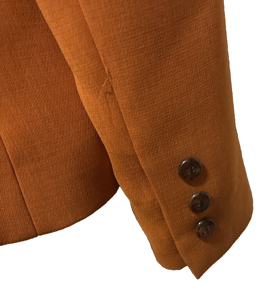 Elevate your wardrobe with this stunning Kasper blazer in a beautiful rust/burnt orange hue. This classic piece features a single-breasted cut with a notched collar and button closure, perfect for any occasion from workwear to cocktail parties. The blazer is made from high-quality polyester twill fabric, which makes it durable and easy to care for with dry cleaning. The blazer is fully lined with polyester, adding to its comfort and structure. The vintage-inspired design adds a touch of sophistication to any outfit, while the mid-length coat and long sleeves make it perfect for fall, winter, and spring seasons. This blazer is a must-have for any woman's wardrobe, and it's available in size 12P.