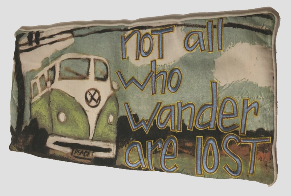 Creative Co-Op, Inc. Kellie Montana "not all who wander are lost" Embroidered Rectangular Throw Pillowcase Condition: Pre-owned.