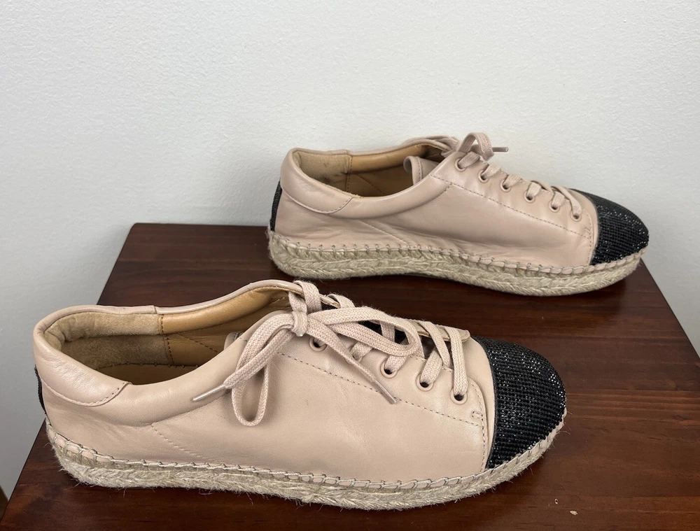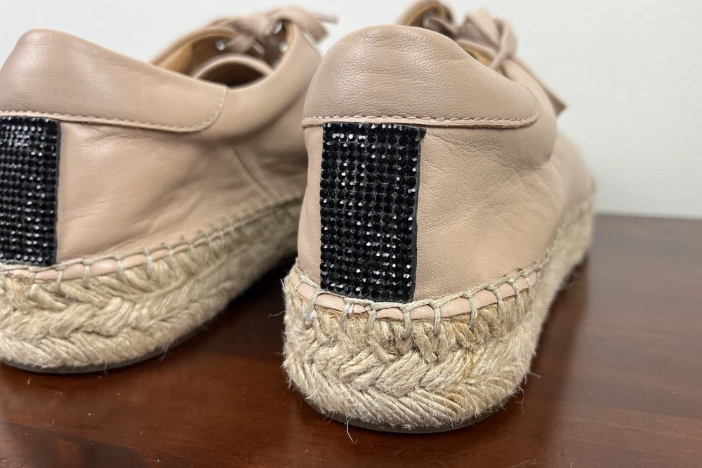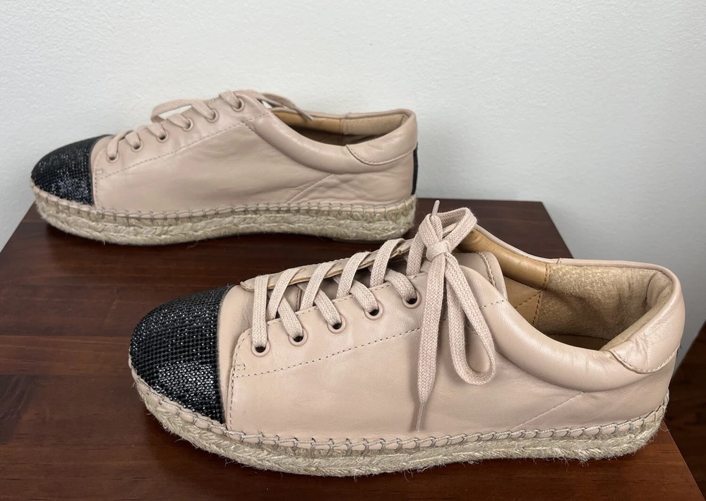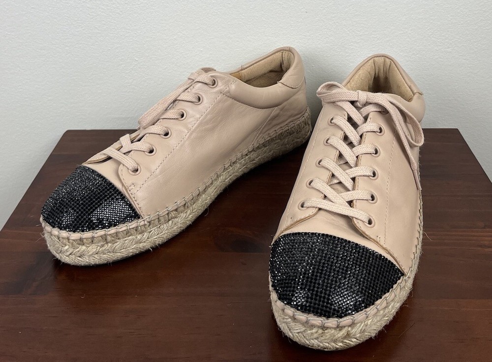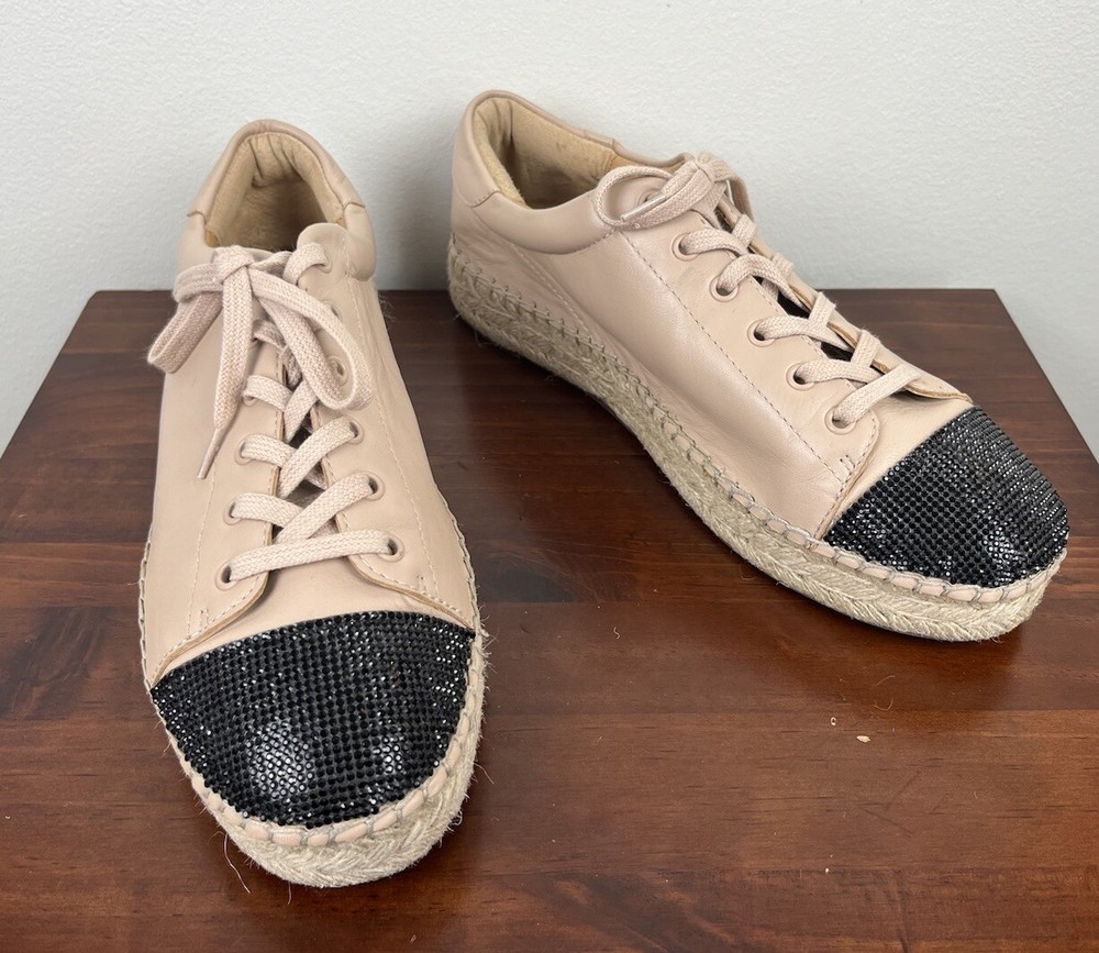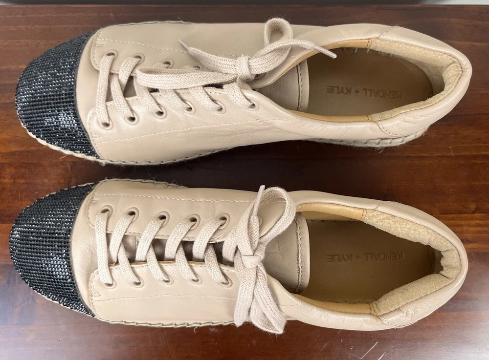 KENDALL + KYLIE women's JOSS (JOSLYN) embellished contrast toe & hind espadrilles in natural leather. Size: 9.5M Color: Pink with embellished black heel In gently used condition with some minor wear (pictured). Please see my photos and let me know if you have any questions. Thanks for stopping by!
