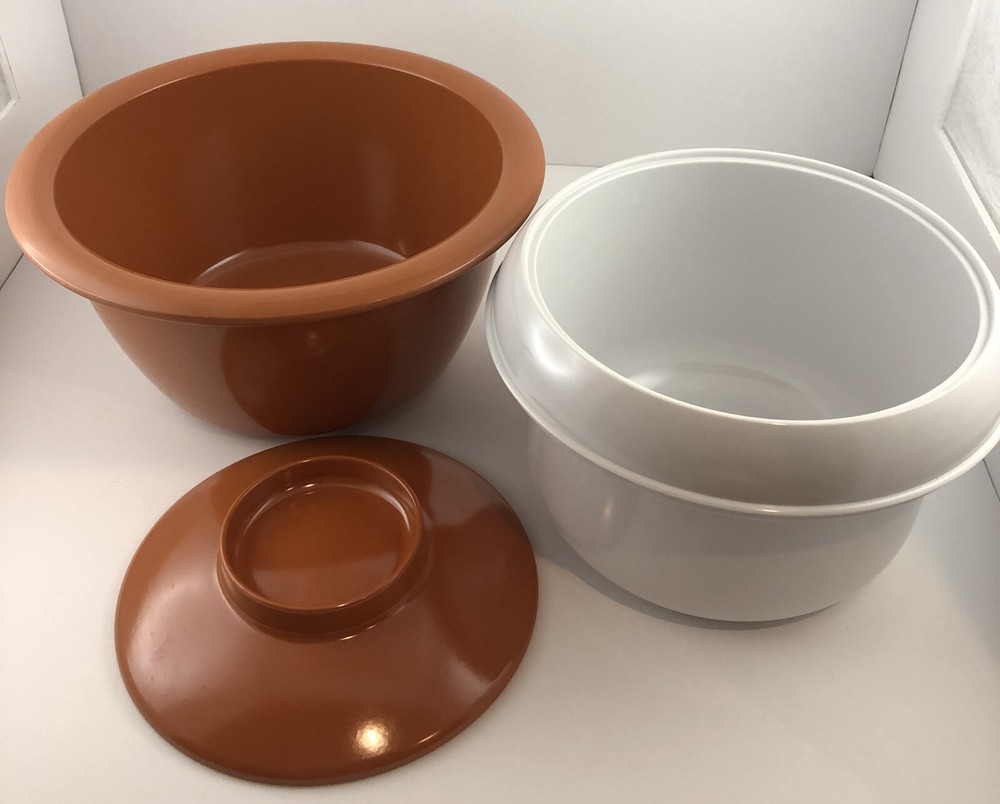 Add some vintage charm to your barware collection with this Kenro Ice Bucket from the 1950s. This Mid-Century piece is made of durable Melmac/Melamine material and features a stylish Toleware design. It is about 7” tall and 9.5” wide. In good vintage condition with normal wear as it is from the mid century.