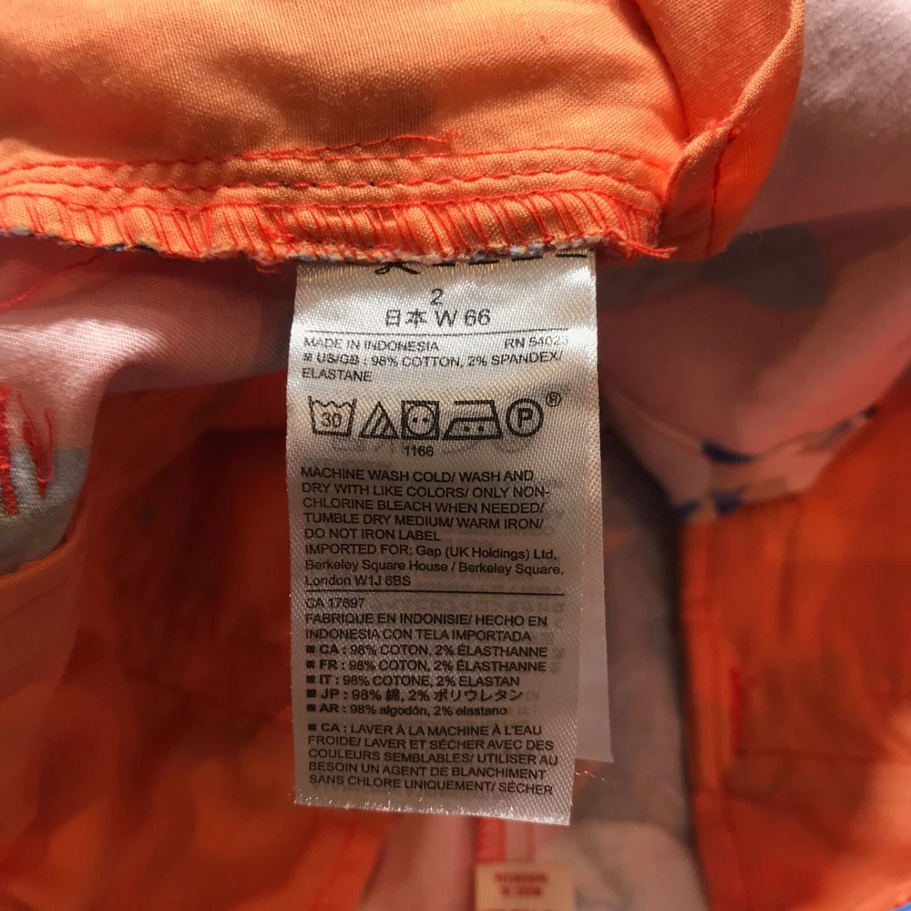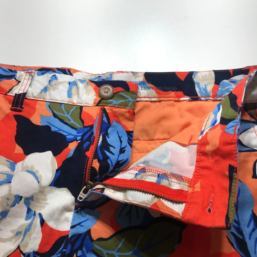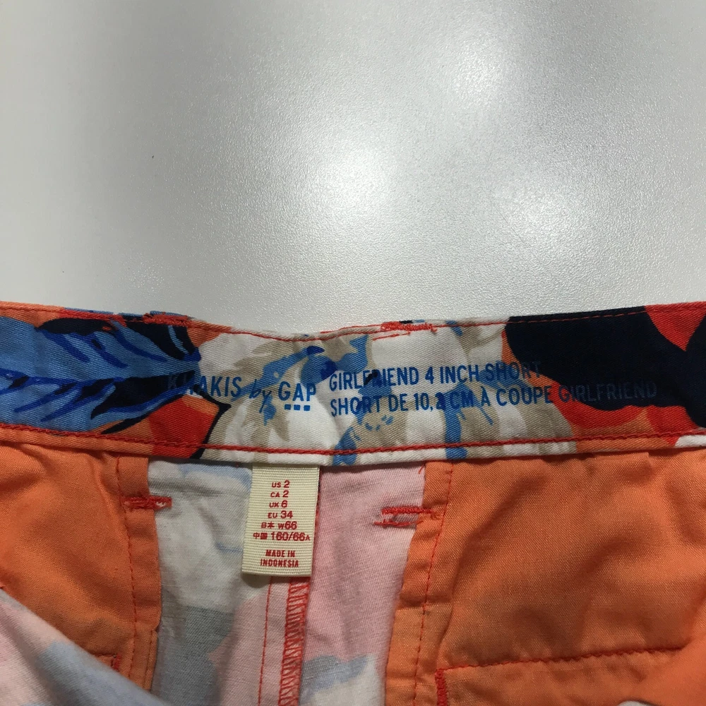 Khakis by Gap Shorts Size 2 Orange Floral Print 4" Inseam Mid Rise Girlfriend Brand: Khakis by Gap Size: 2 Color: Orange Style: Chino Features: Comfort, Pockets, Stretch, Cuffed Condition: Pre-owned Region/Country of manufacture: Indonesia SKU: 0843-11 Actual Measurements(See photographs of actual measurements above)*: Waist: 30 in Rise: 9 in Inseam: 4 in *Waist & Inseam are measured to the nearest whole inch. Half inch measurements are rounded toward the tag size so please see the photos of the actual measurement. The waist is measured across the back and doubled with a dip in the front. The inseam is pulled tight before measuring. The rise is measured to the nearest 1/2". The leg opening is measured with pants laid flat and doubled. Depending on the item's weight and destination, I will ship this item out via USPS First Class Mail, Priority Mail, or Fed Ex Home Delivery with a tracking number for confirmation. If you want a specific delivery service, please contact me prior to making a purchase. I ship items out daily so expect a quick delivery. Items typically ship the same business day. I try to respond to questions right away so please feel free to ask for information or photos. We do our best to describe accurately and measure approximately at the time of listing, but just in case the item doesn't work for you, we offer 60 day free returns on unused/unworn items. Please measure and check your favorite items at home to estimate fit. Thanks for looking.
